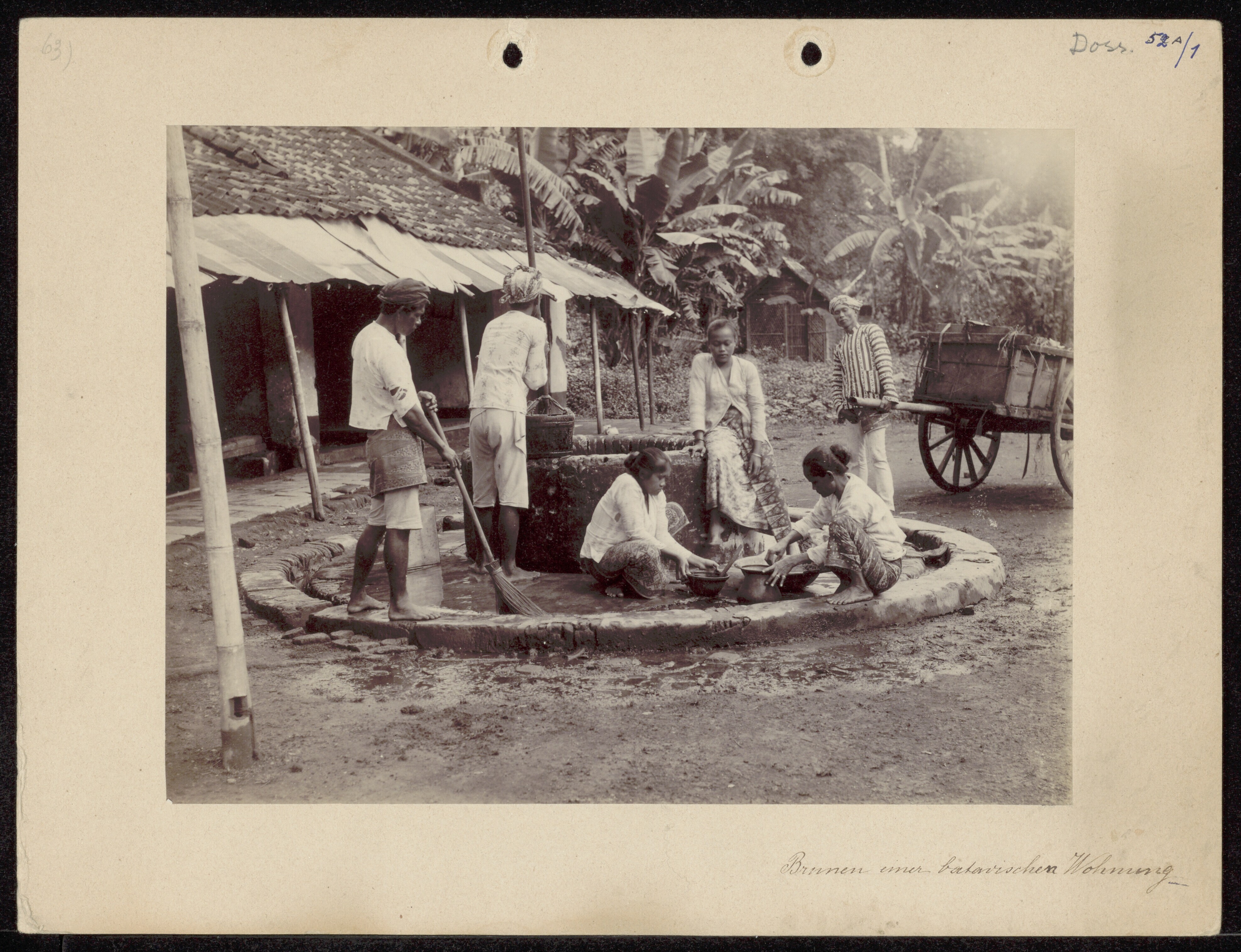Bedrijvigheid rond een waterput bij een woning