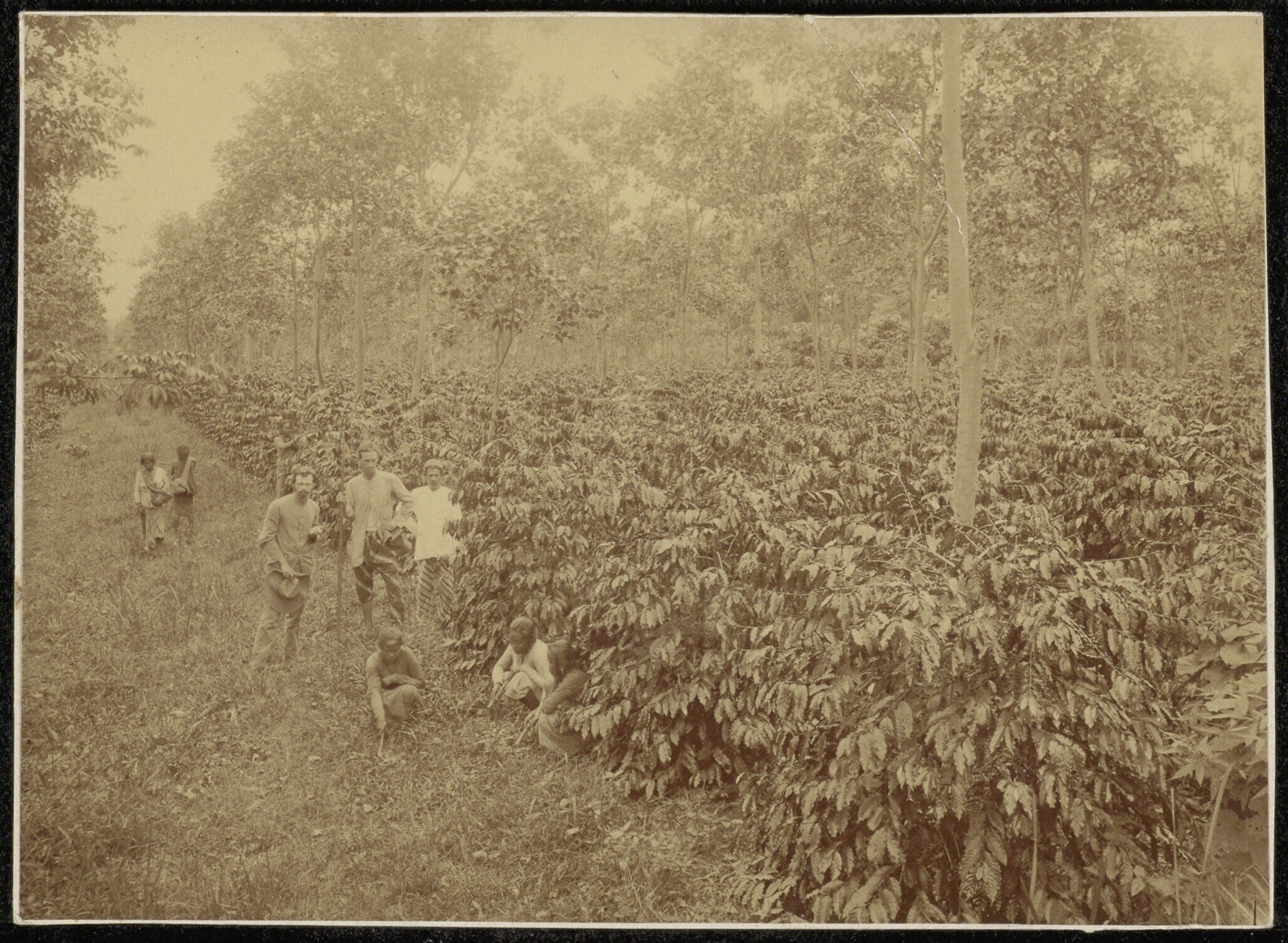 Arbeiders van de kina- en theeplantage Sedep in Pria...