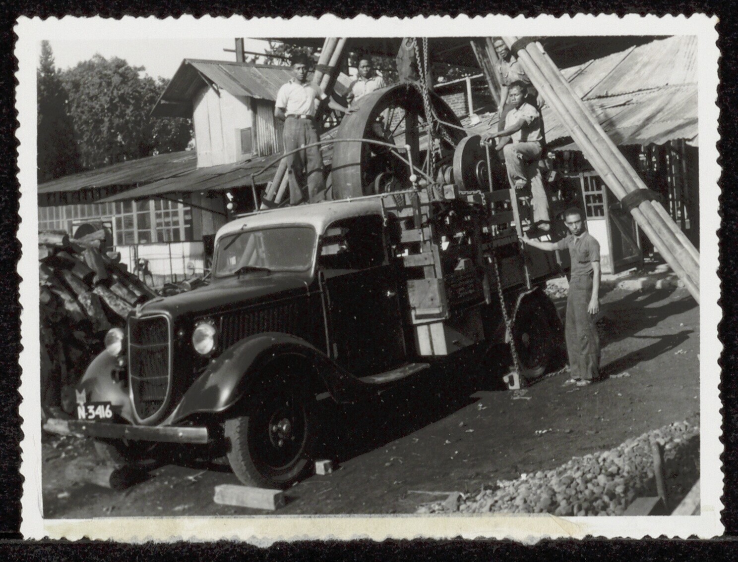 Javaanse arbeiders en kinderen poseren met een Europ...