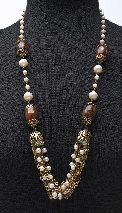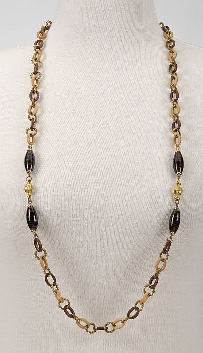 Bruine ketting met kralen en schakels