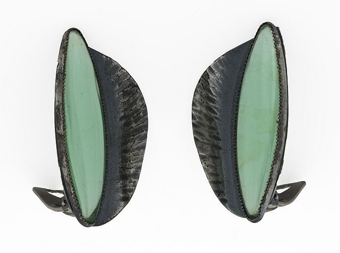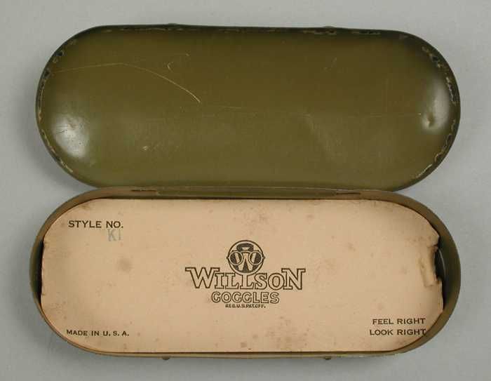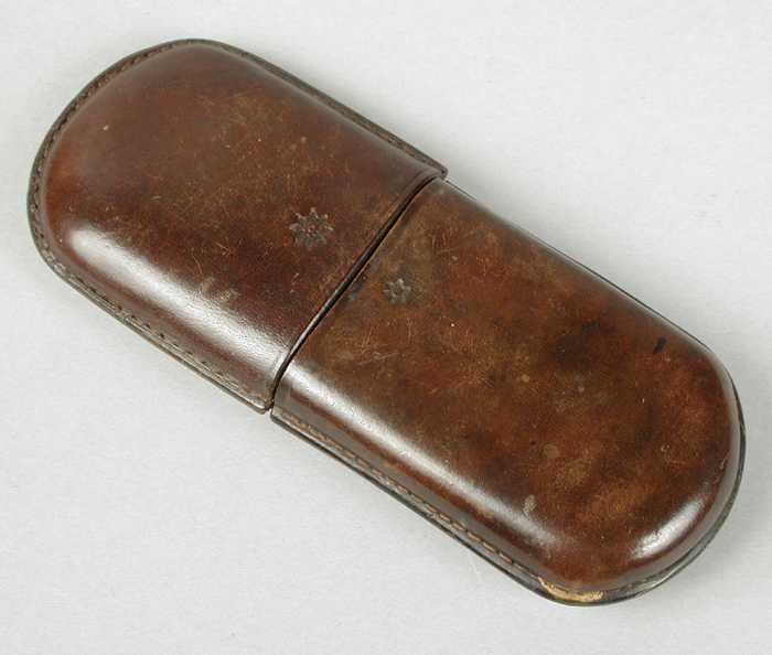 Brillenkoker, olijfgroen blik met scharnierend dekse...