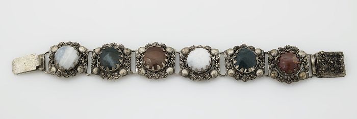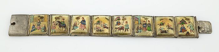 Armband van zilverkleurige metalen schakels ingelegd...