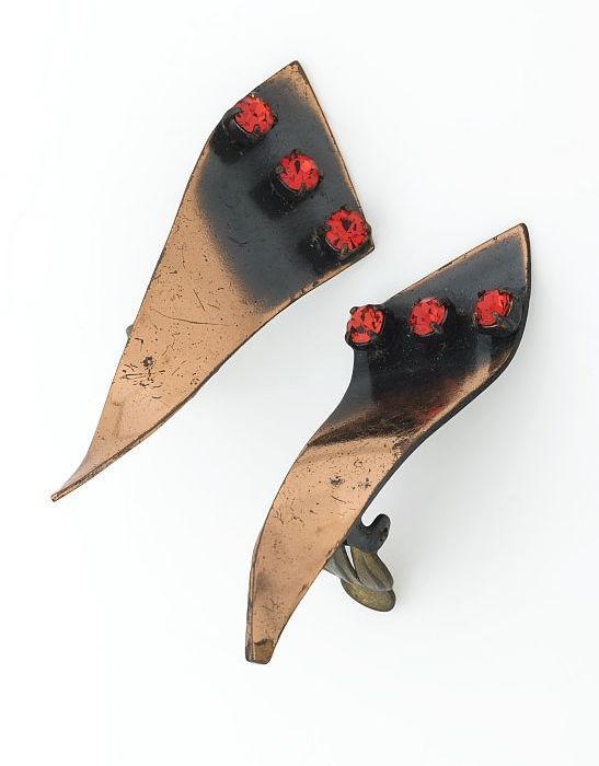 Driehoekige roodkoperen clips met rode strass-steentjes