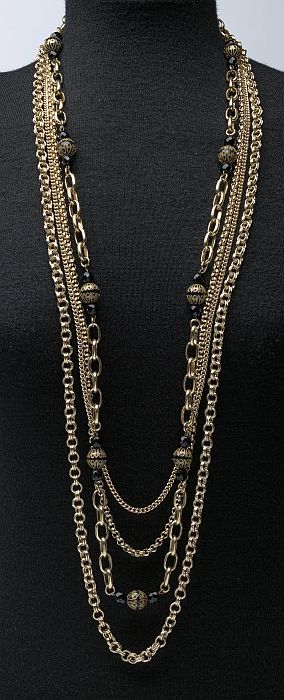 Goudkleurige ketting met vier snoeren en zwarte kralen