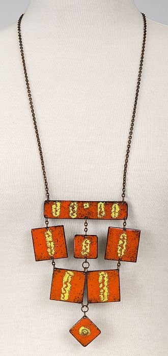 Metalen ketting met geëmailleerde oranje hangers