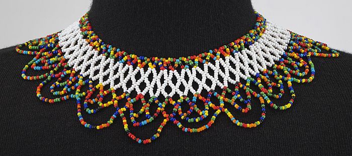 Halsketting van geregen kraaltjes, veelkleurig