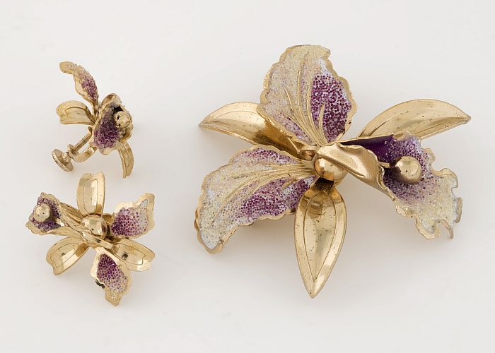 Goudkleurige broche en bijbehorende set oorbellen me...