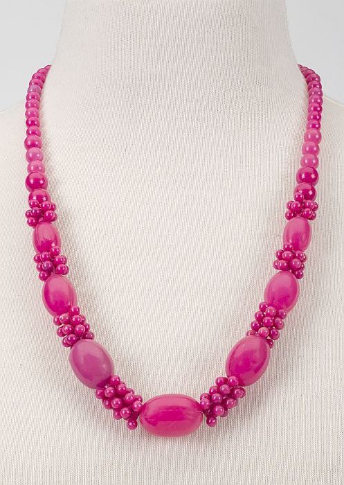 Halssnoer van hardroze ronde kunststof kralen van di...