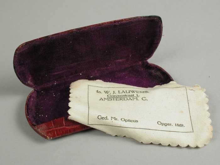 Brillenhoes, rechthoekig zakje van crèmekleurig kato...