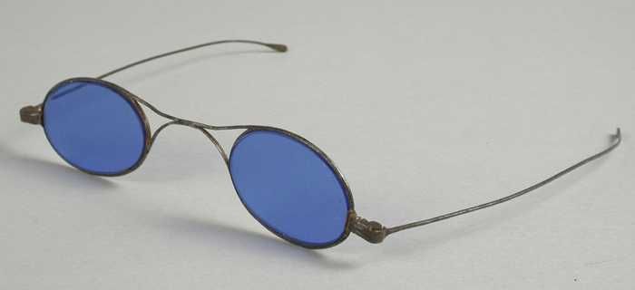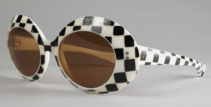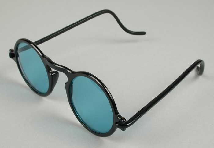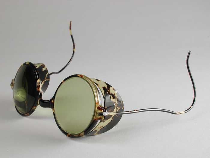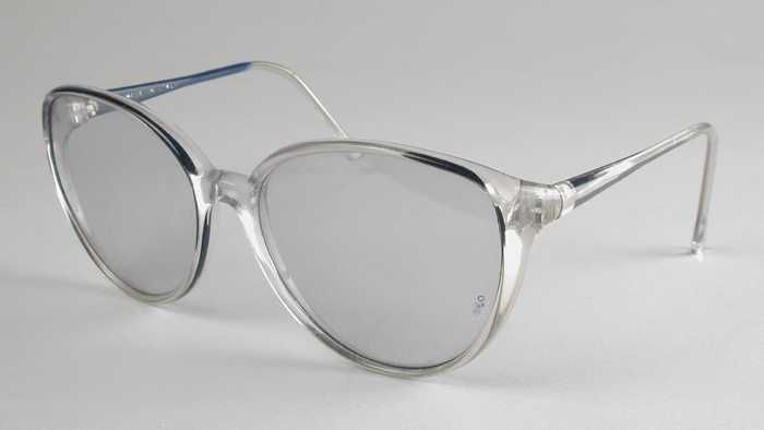 Zonnebril met zeer grote bolle lichtblauwe glazen en...