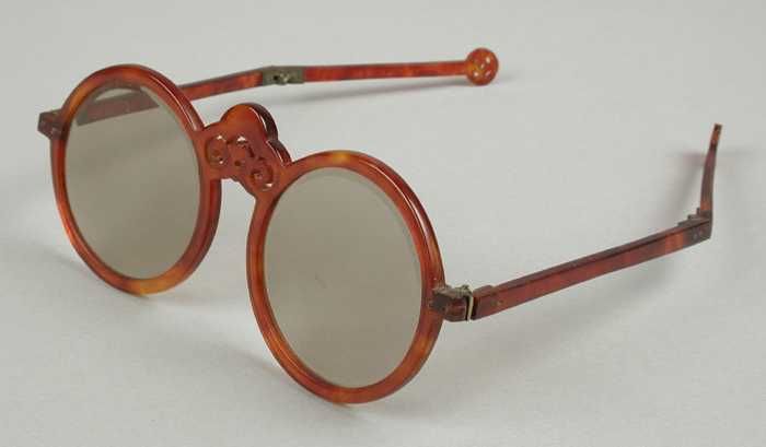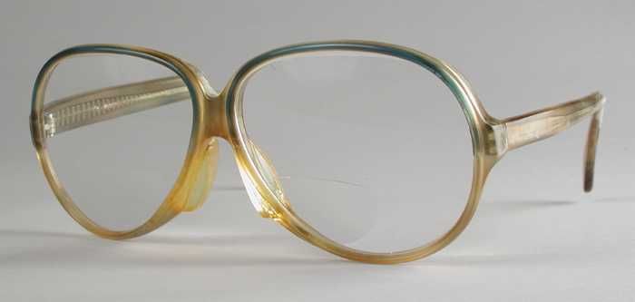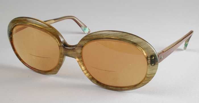 Zonnebril, ovale geelgroene kunststof glazen, in een...