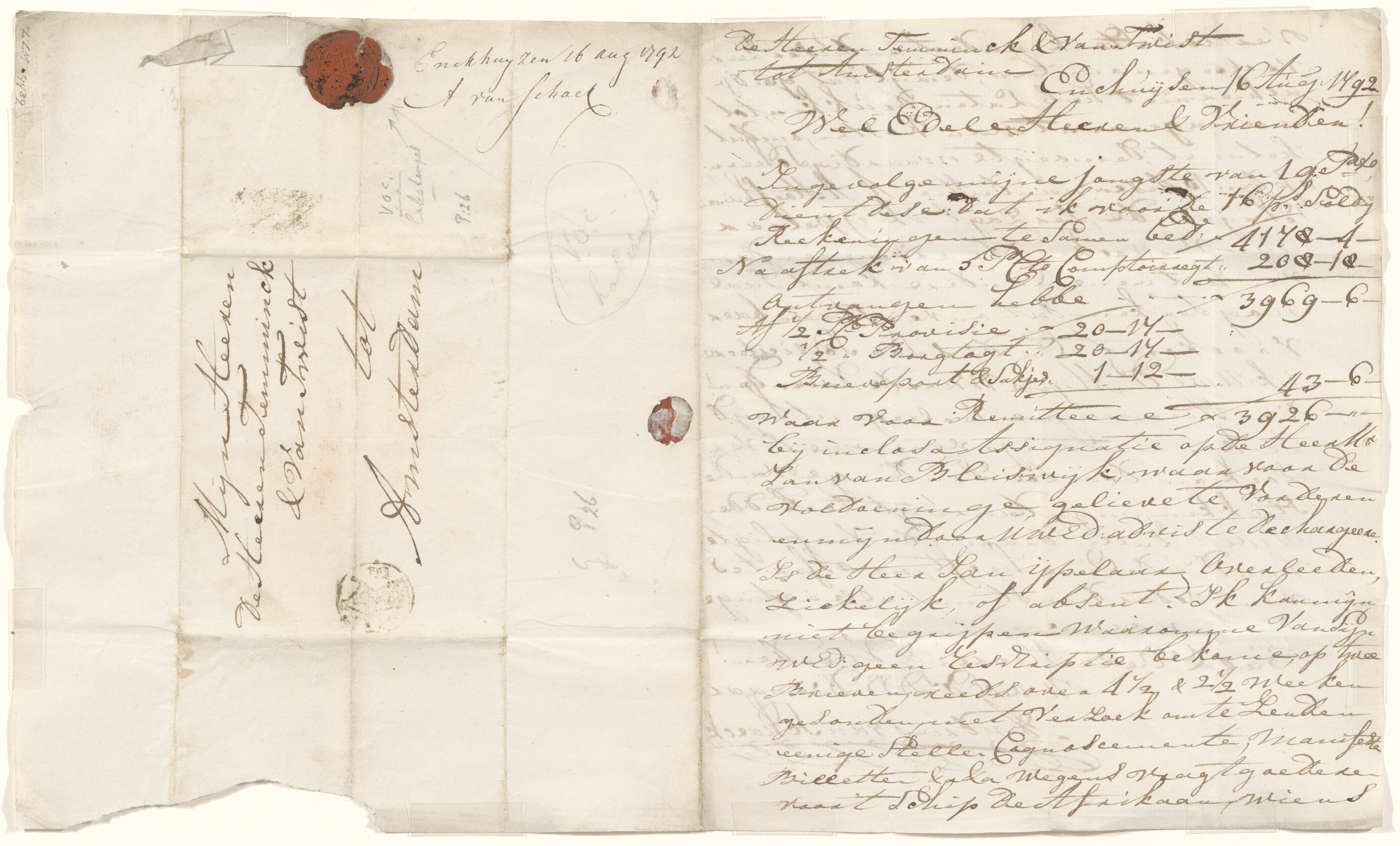 Brief verstuurd uit Enkhuizen naar Amsterdam