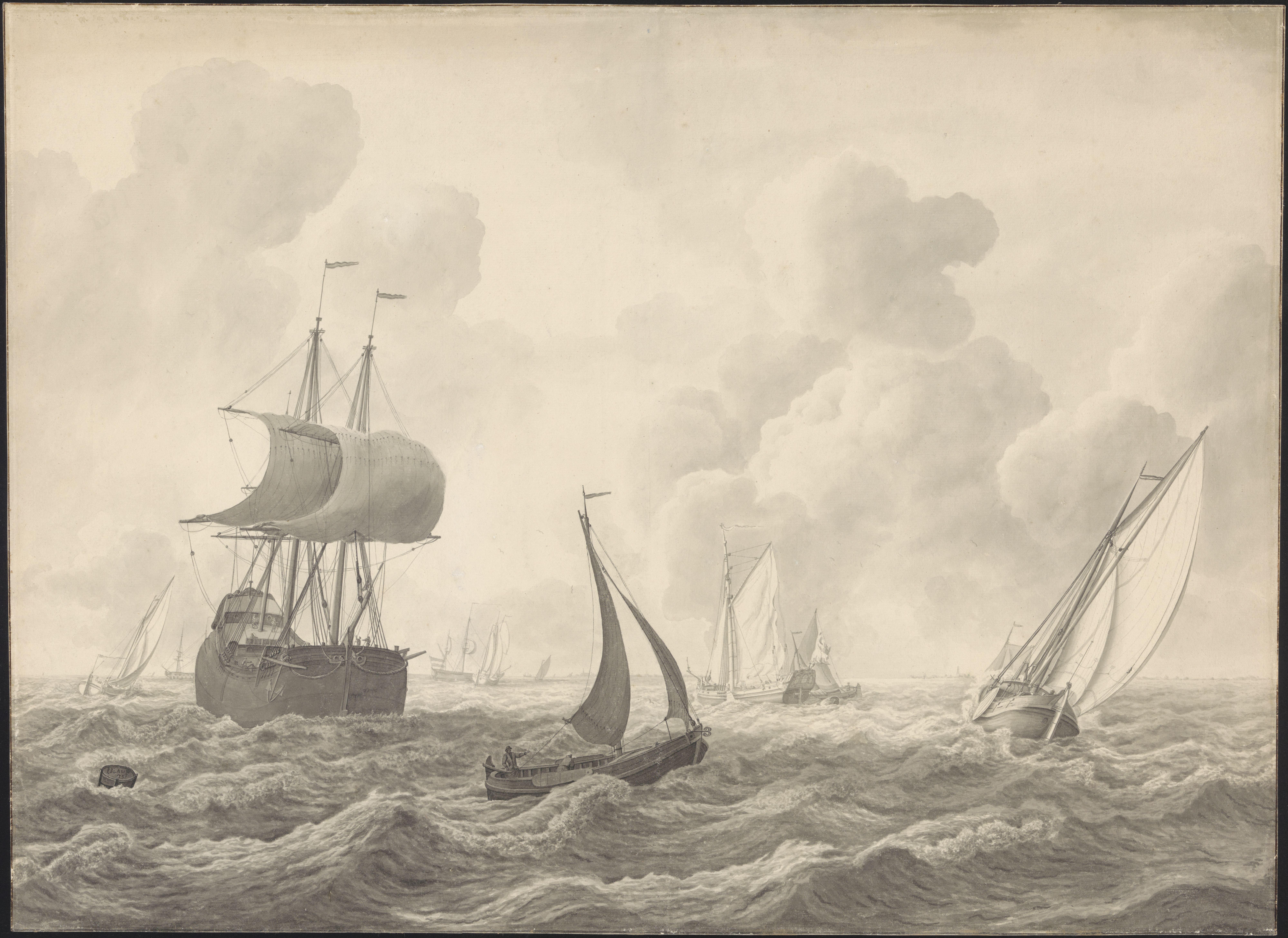 Marine met verscheidene schepen, waaronder walvisvaa...