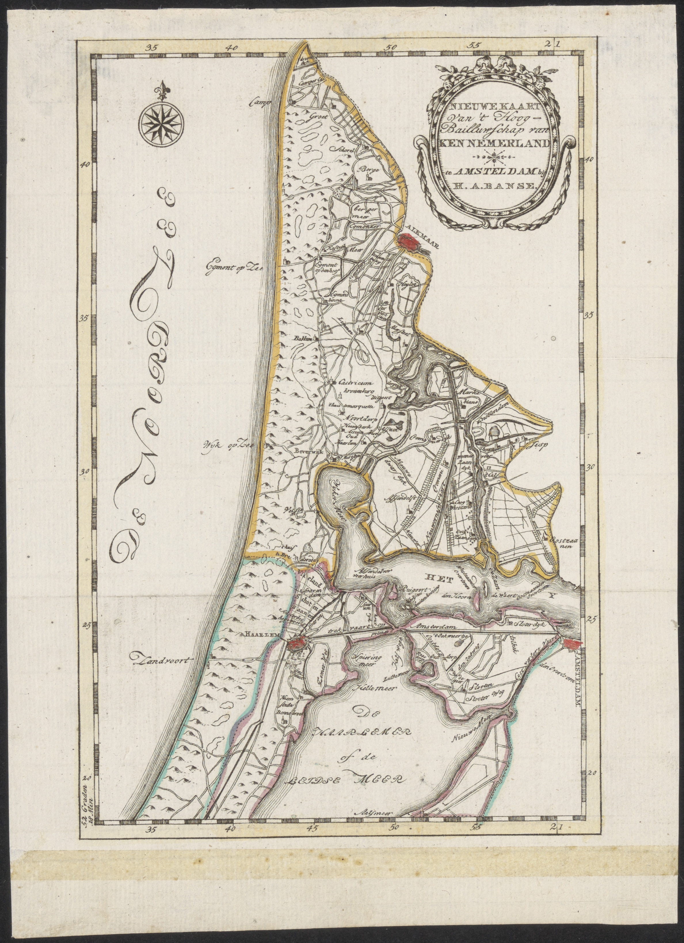Nieuwe kaart Van 't Hoog- Bailluwschap van Kennemerland