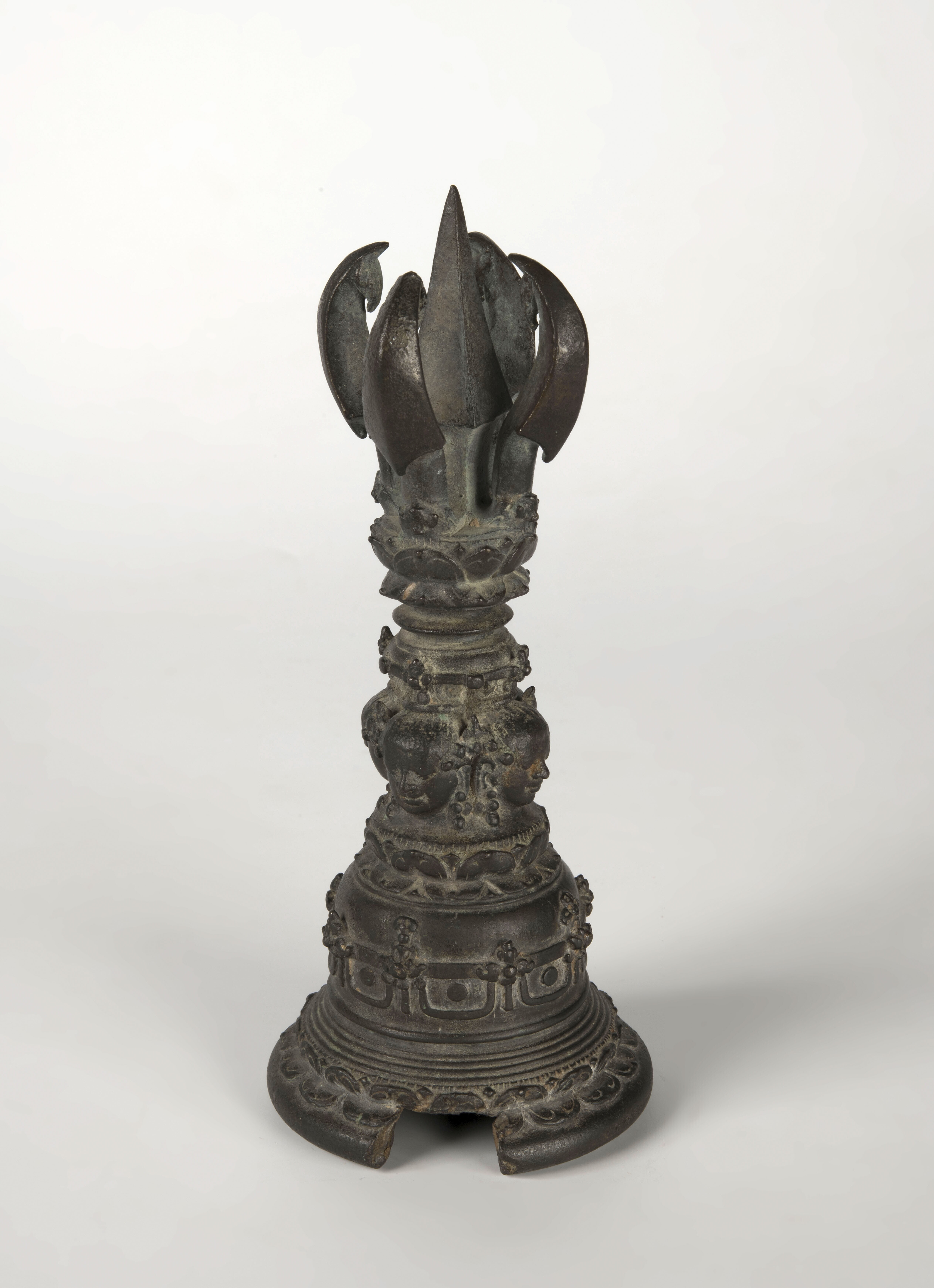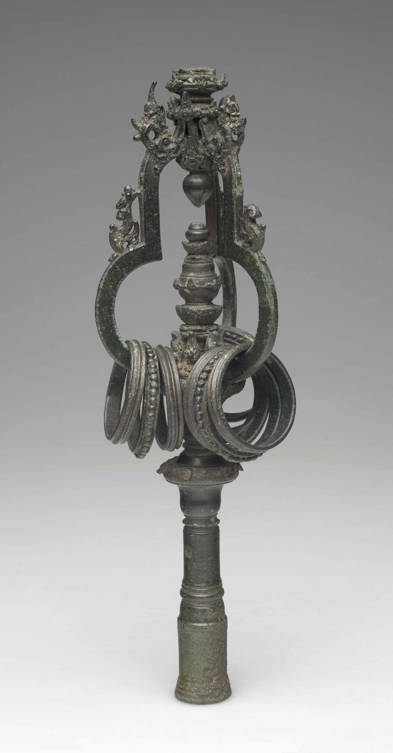 Bronze top to a monk's staff with tinkling rings , t...