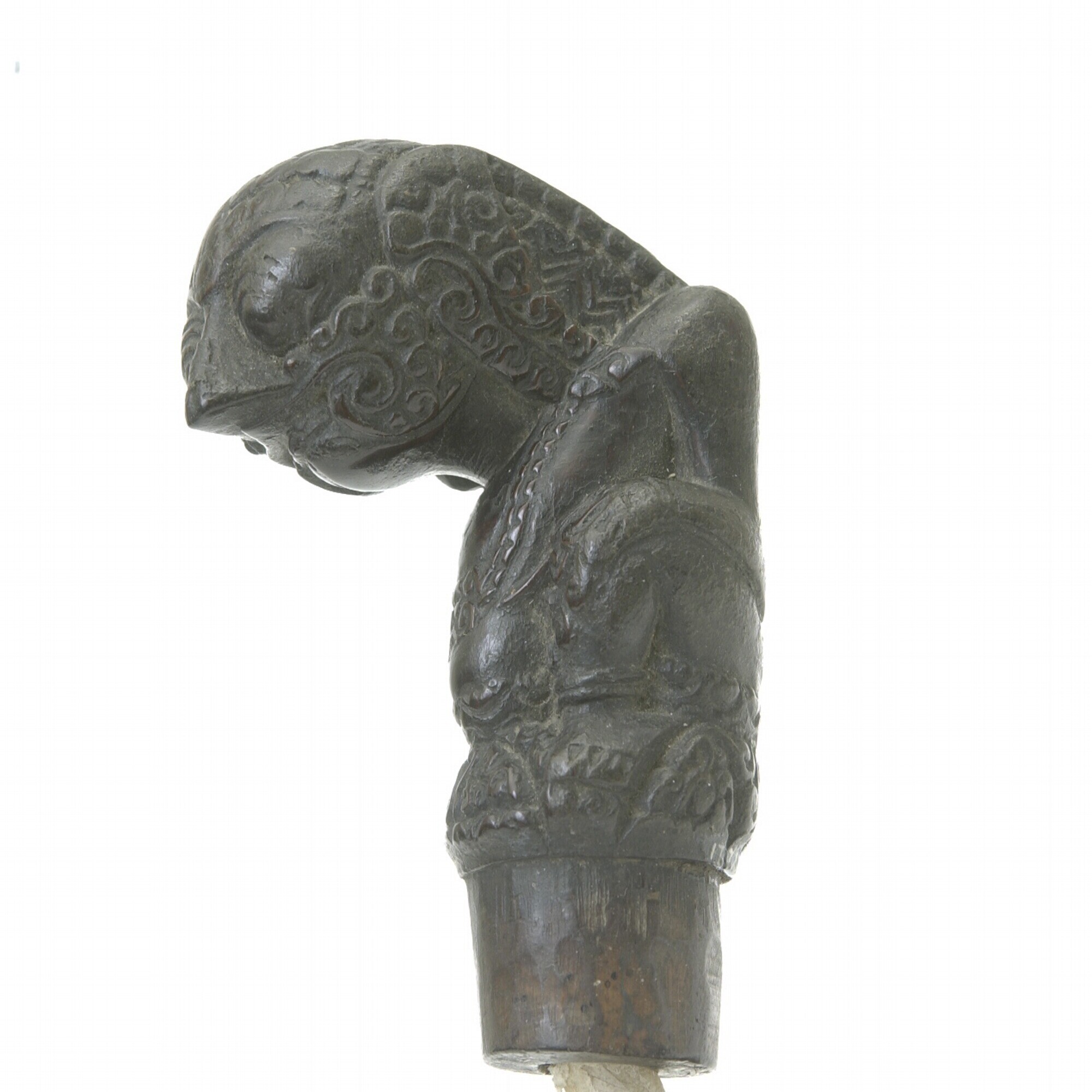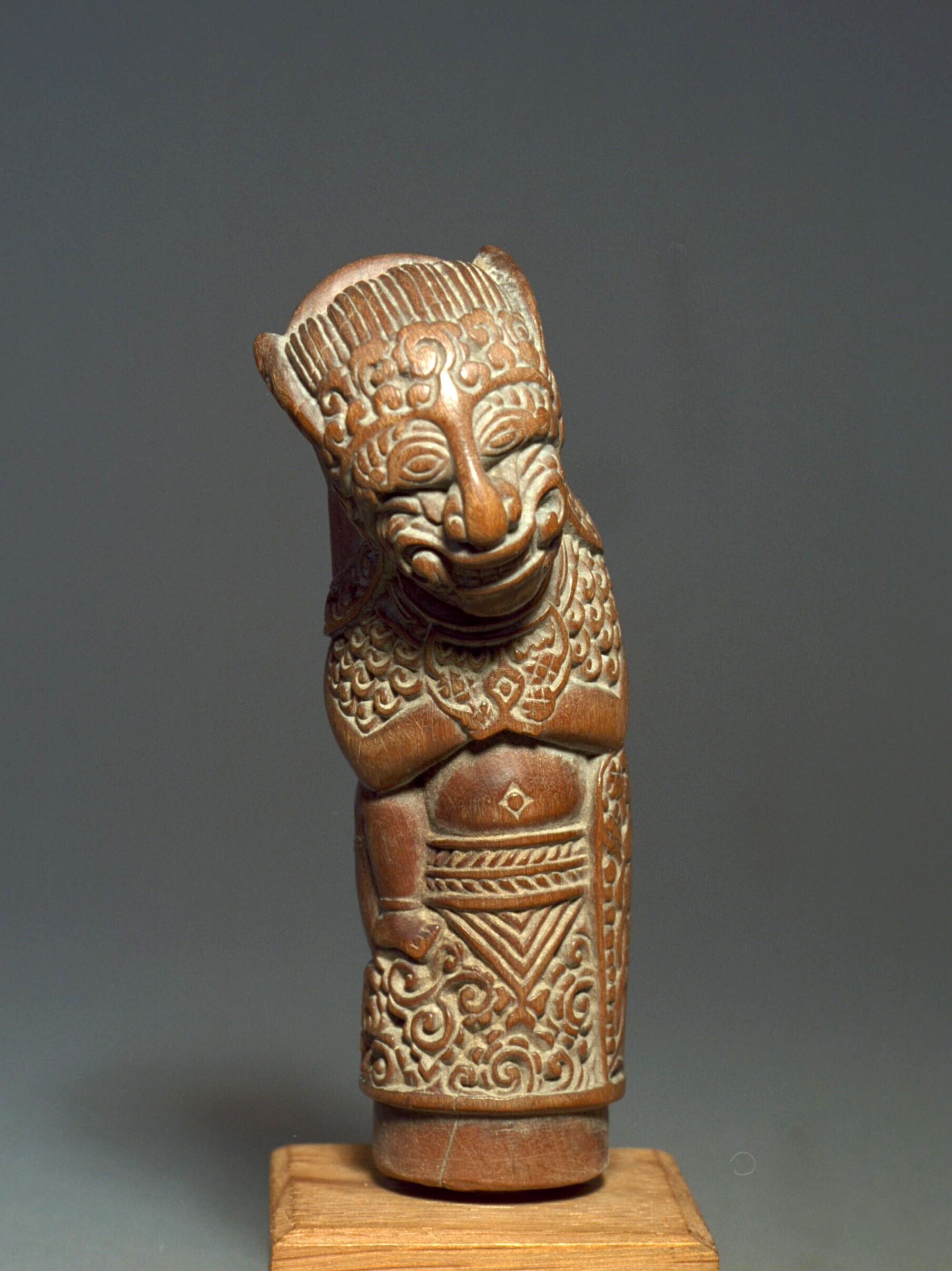 Houten krisgreep in de vorm van een hurkende Rakshas...