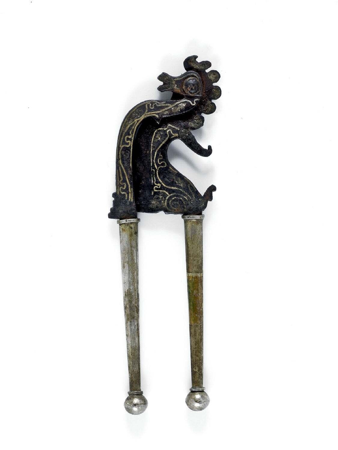 IJzeren speerpunt met ornament van twee naga-koppen