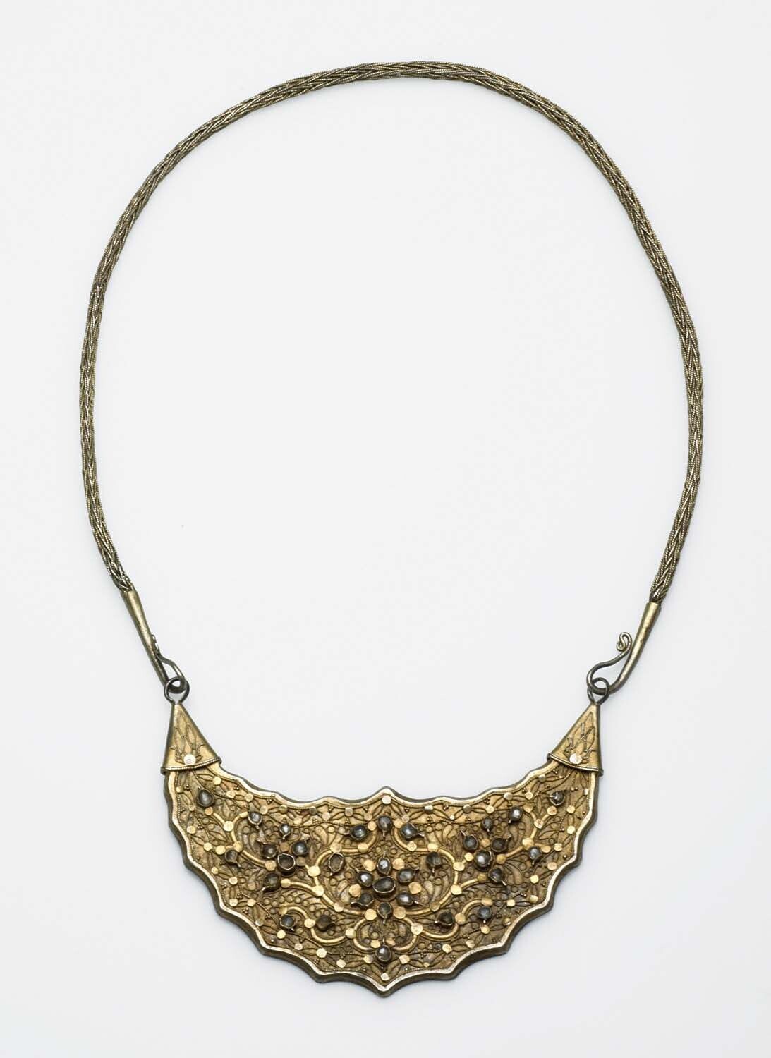Verguld zilveren halvemaanvormig borstornament, beho...