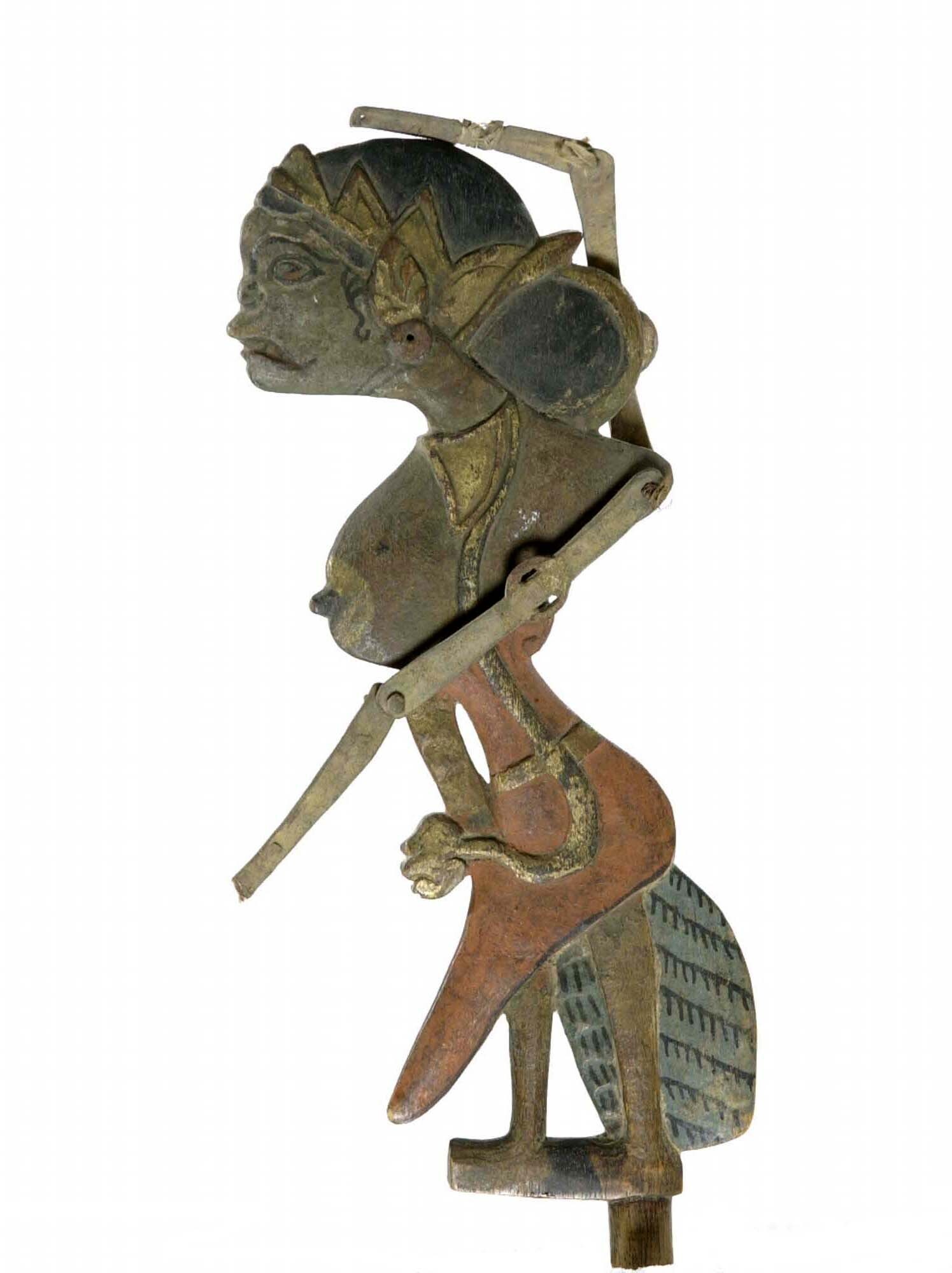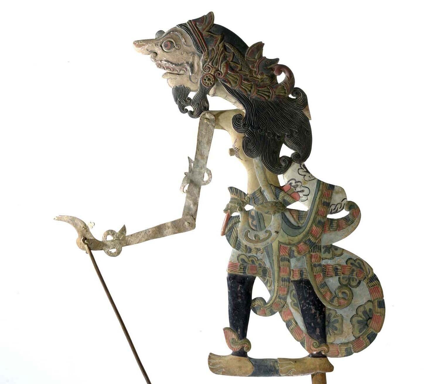 Wajangfiguur van hout en karbouwenhuid, vermoedelijk...