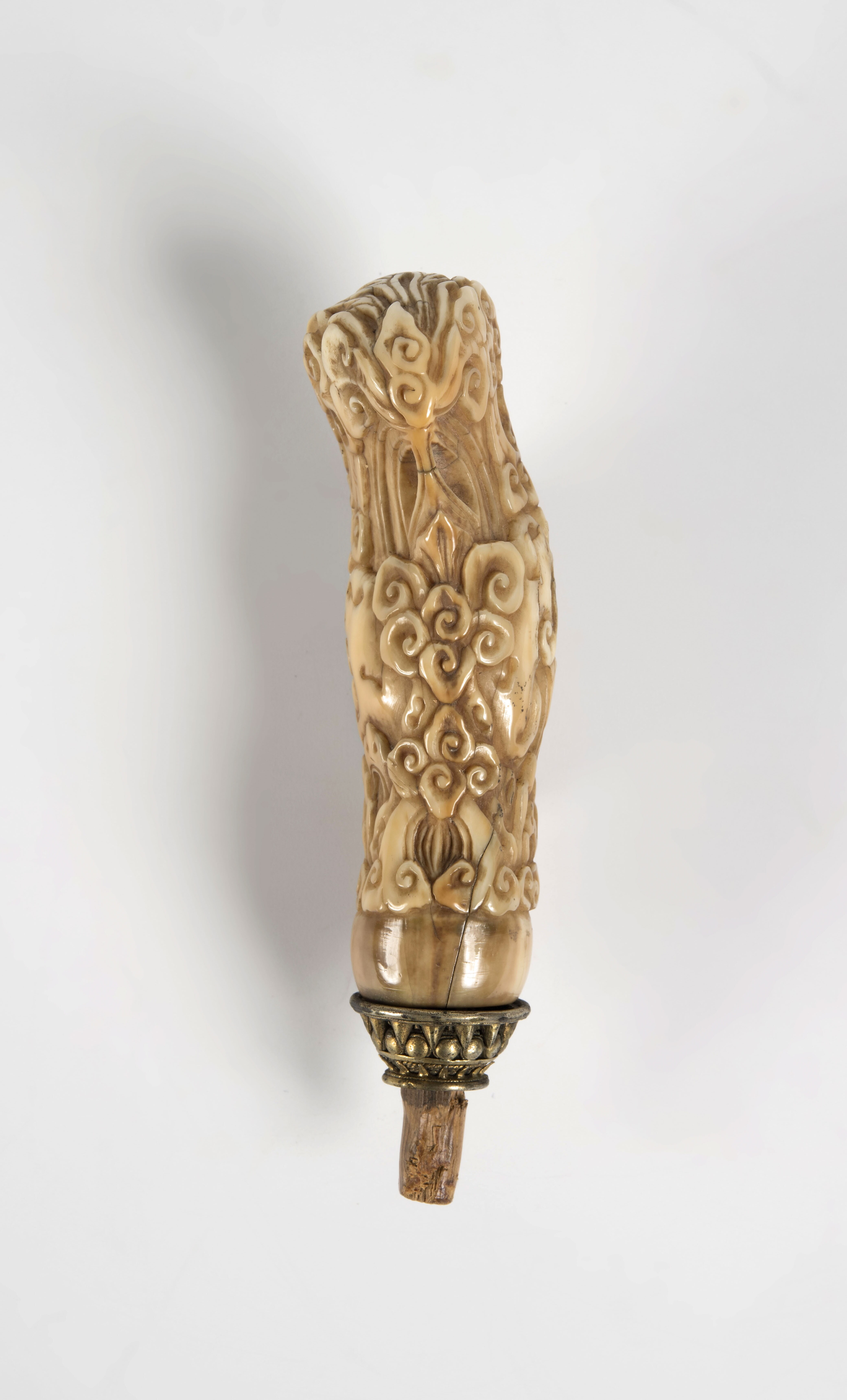 Ivoren krisgreep in de vorm van sterk gestileerde fi...