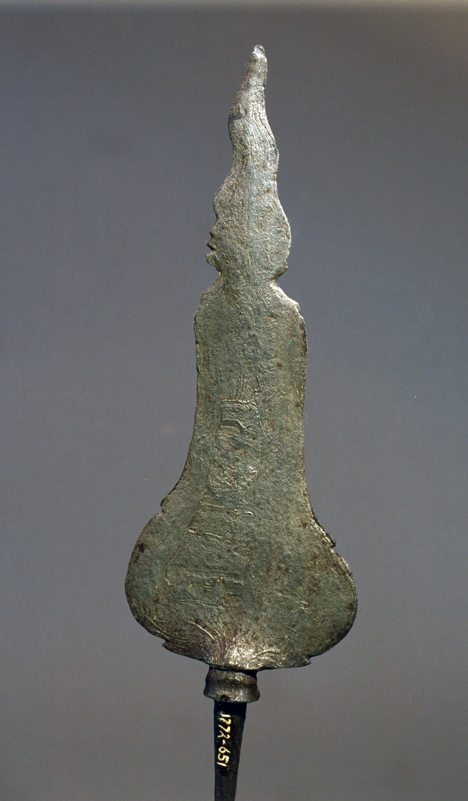 IJzeren lanspunt in sterk gestyleerde mensvorm