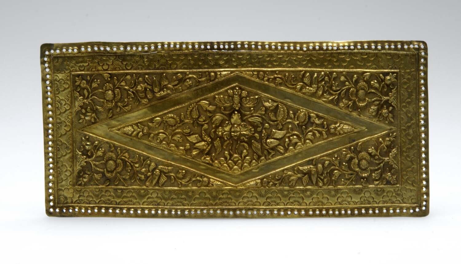 Zijstuk van een slaginstrument, de uiteinden versier...