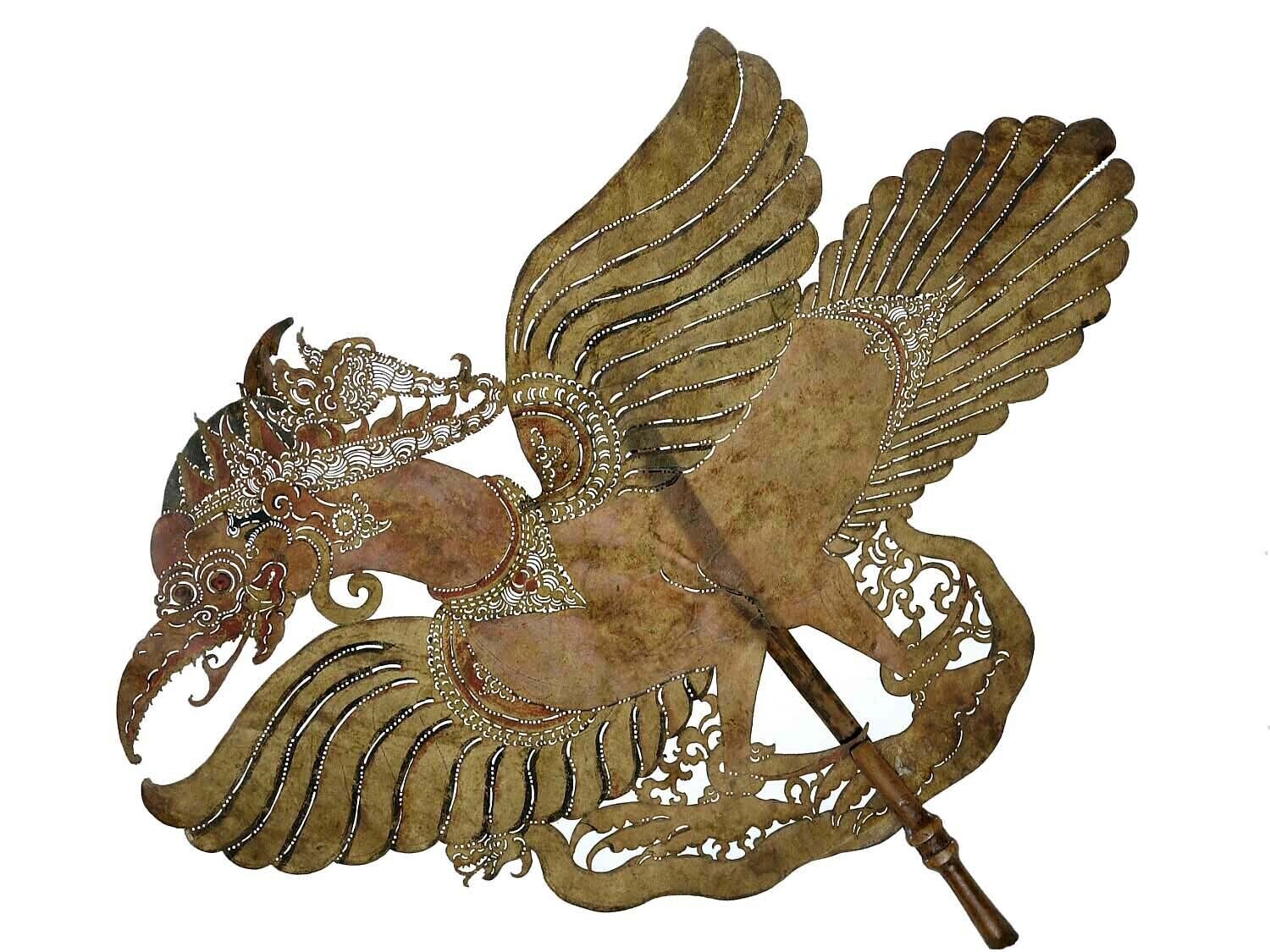 Wajangfiguur van karbouwenhuid, de mythische vogel G...