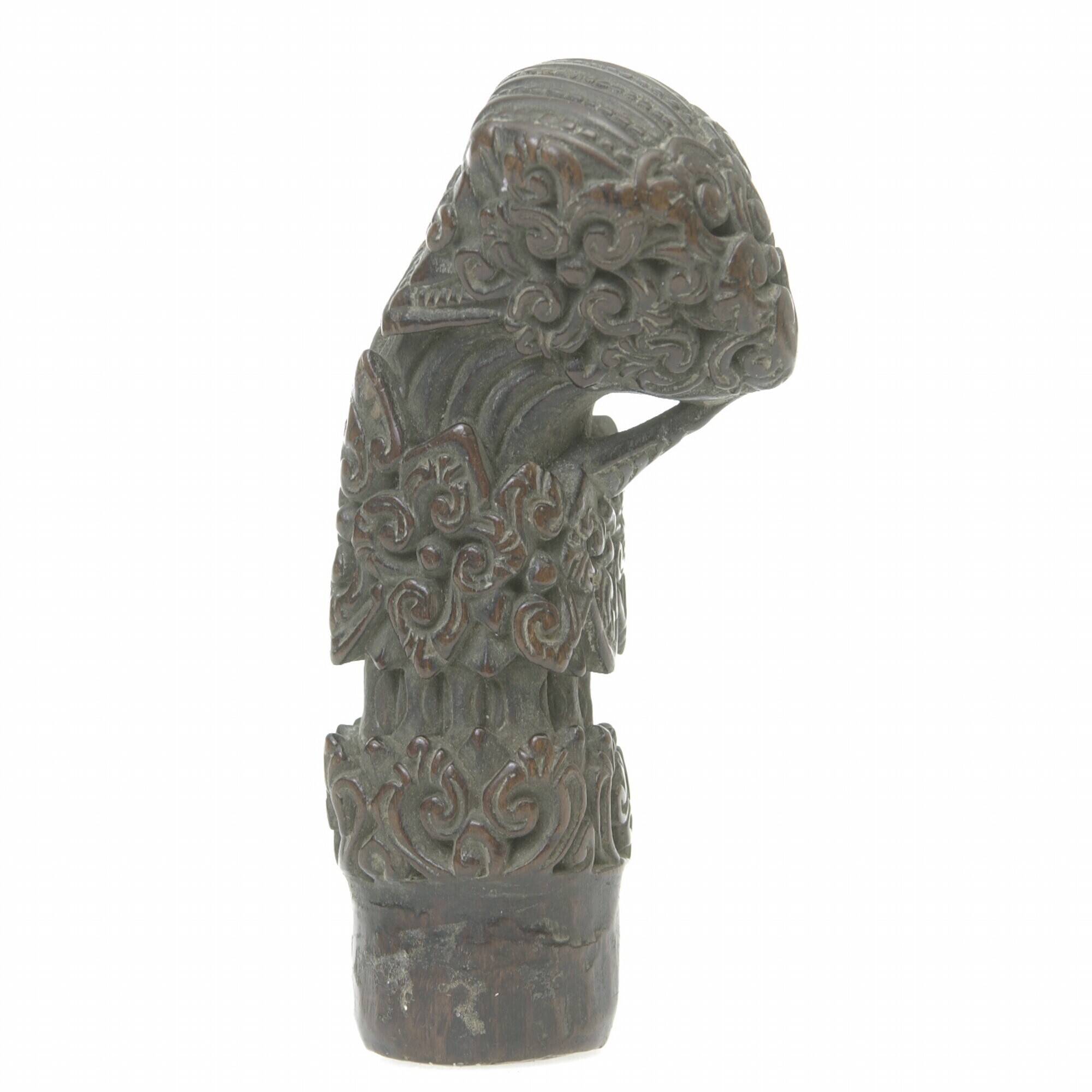 Houten krisgreep in de vorm van hurkende garuda
