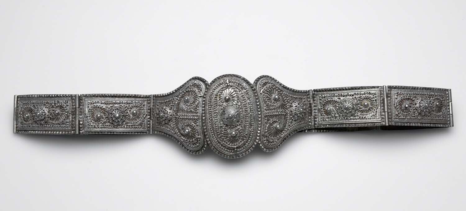 Zilveren riem, versierd met medaillon en a-jour moti...