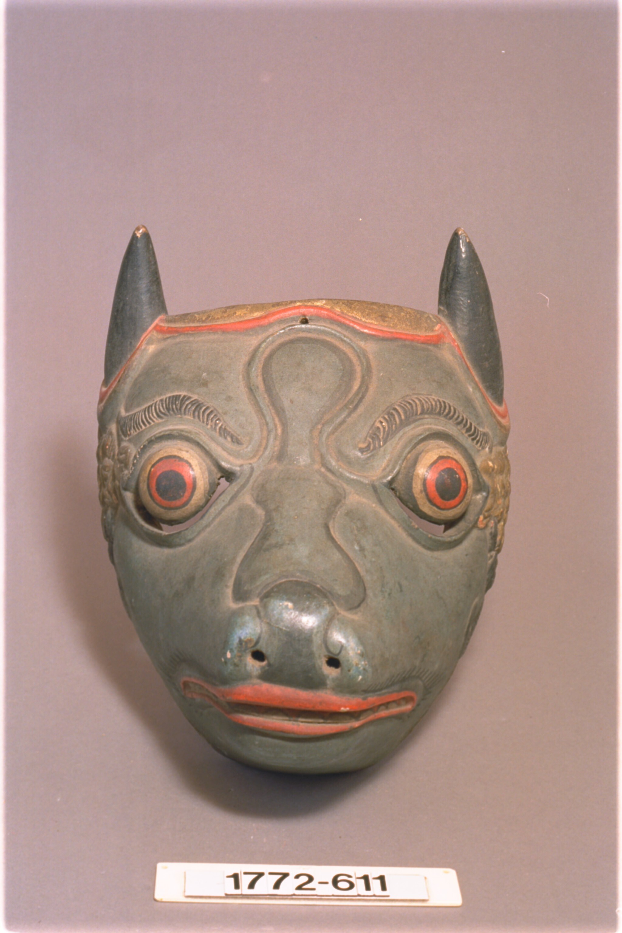 Houten masker in de vorm van dierenkop met horens
