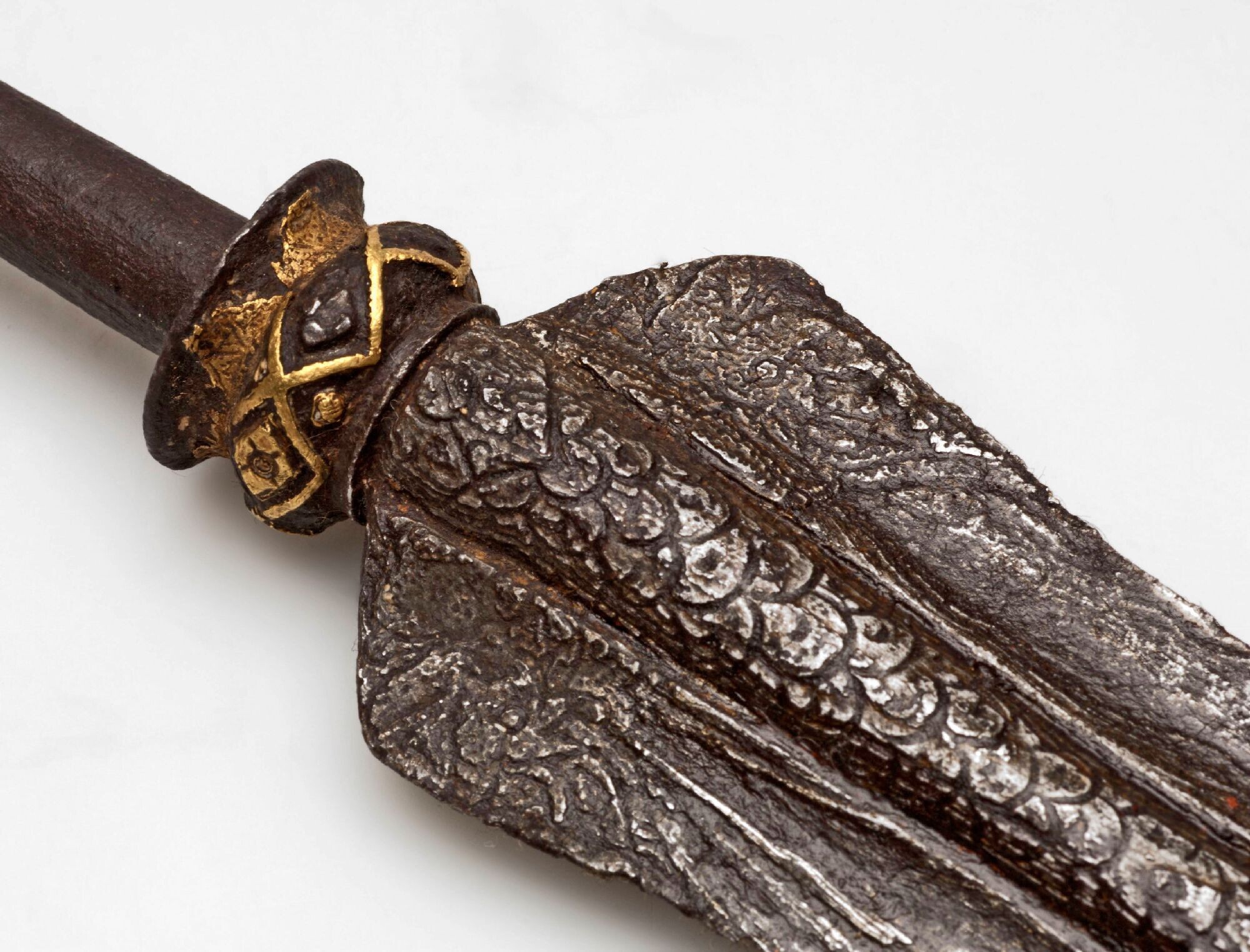 IJzeren speerpunt met steelring van bladgoud