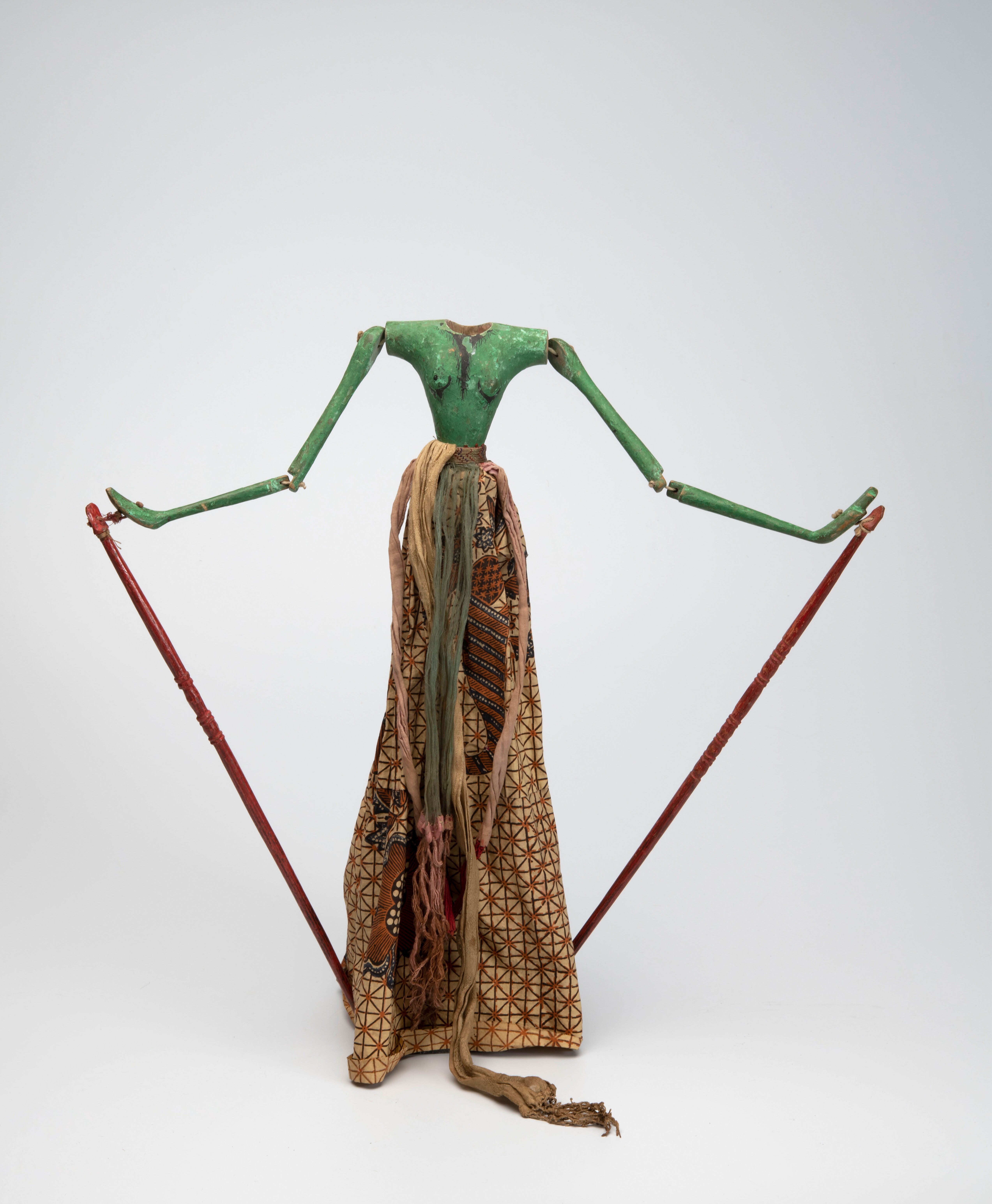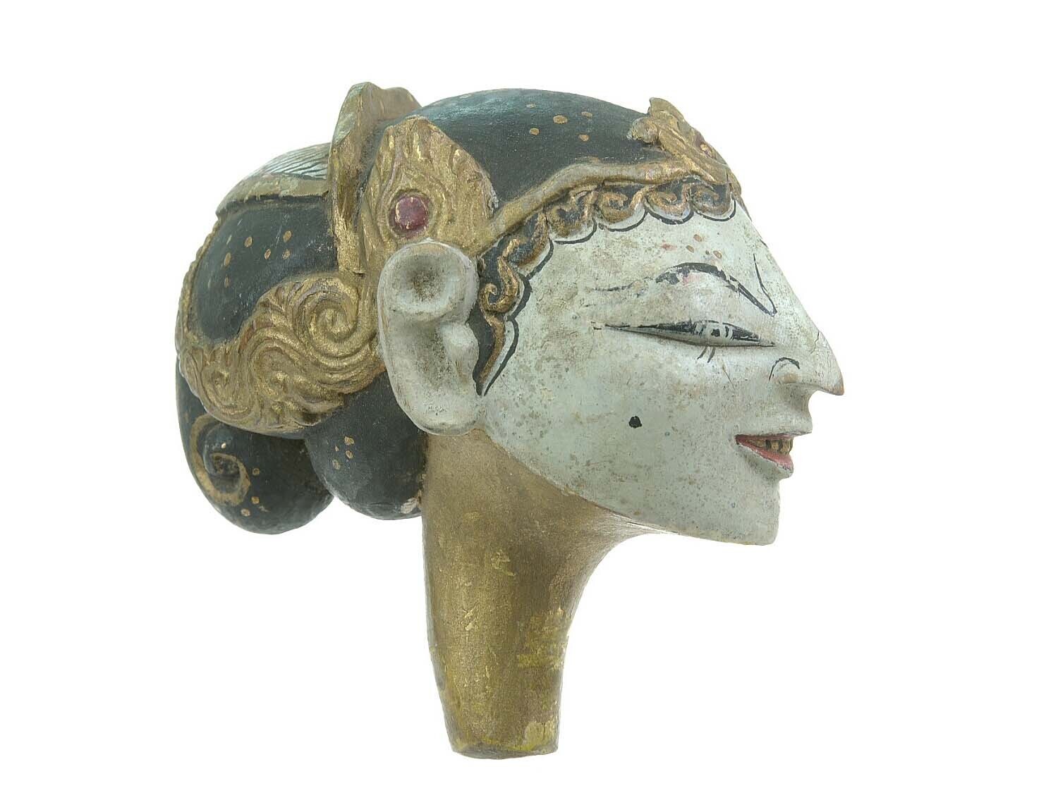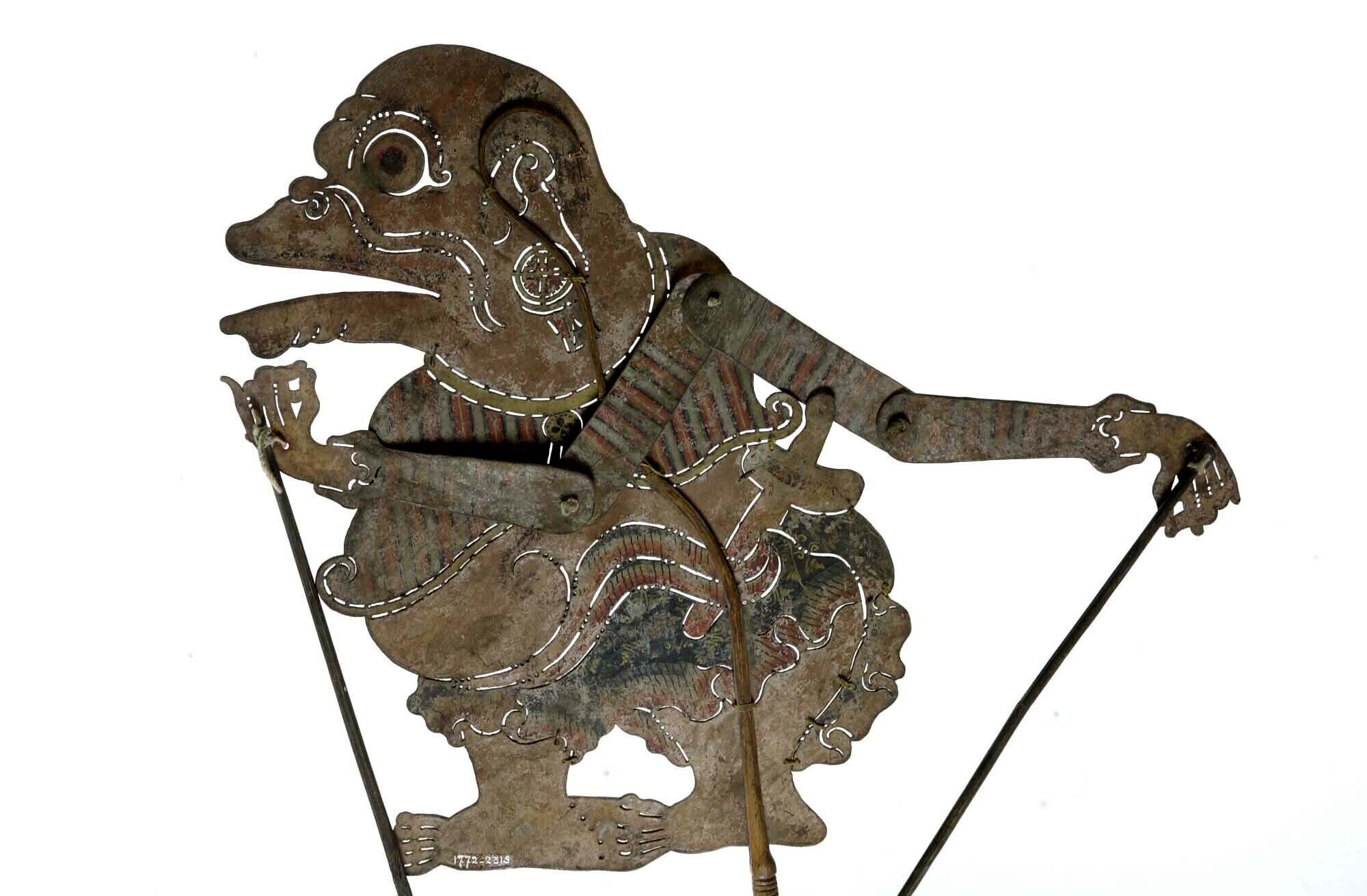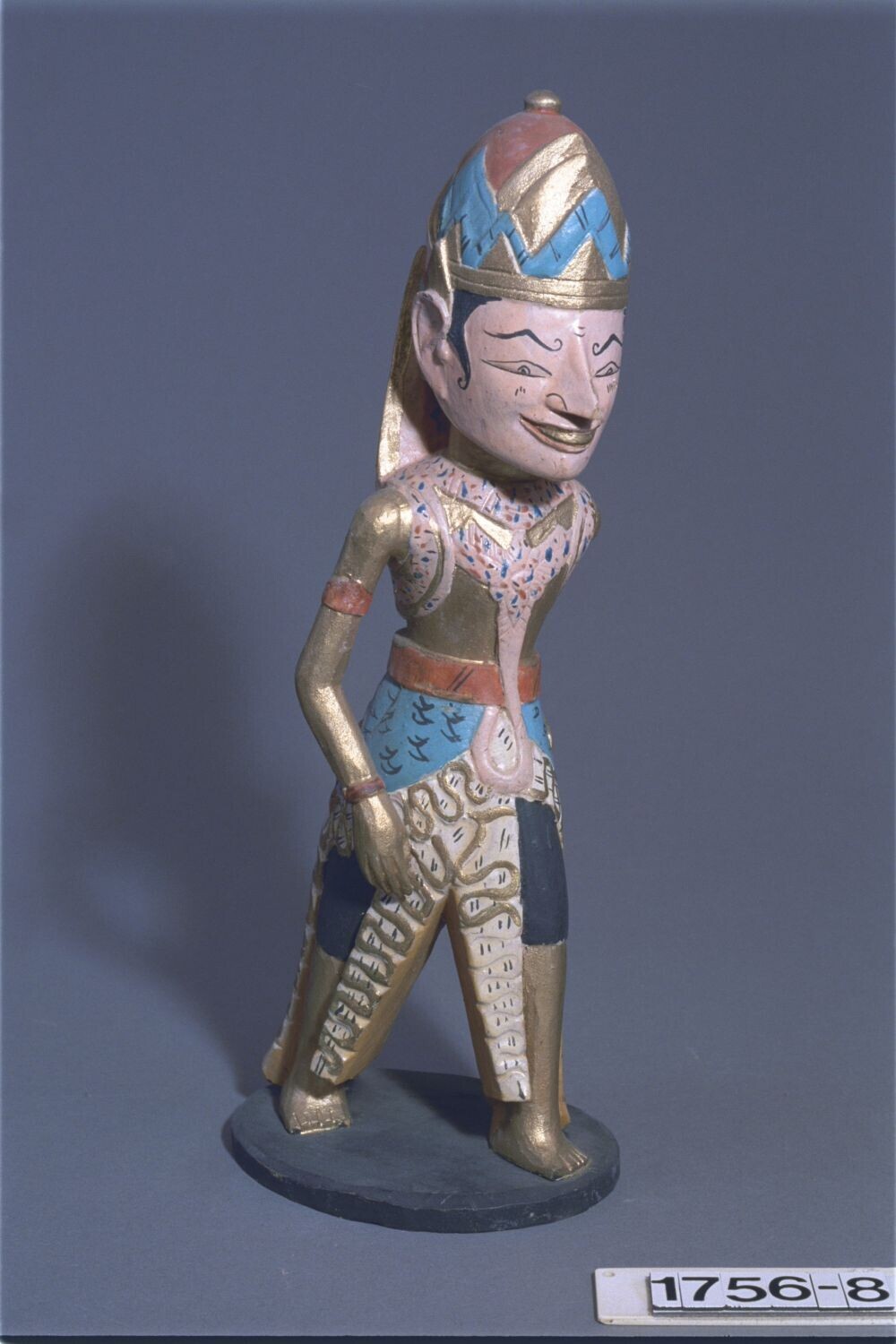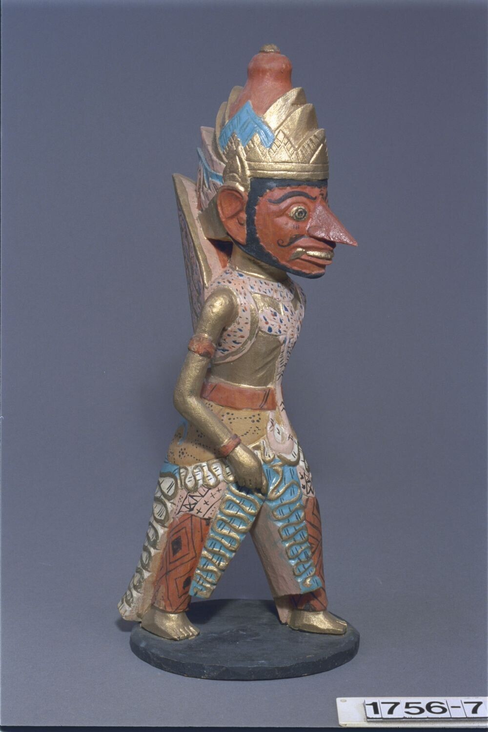 Beschilderd houten beeld in wajangstijl voorstellend...