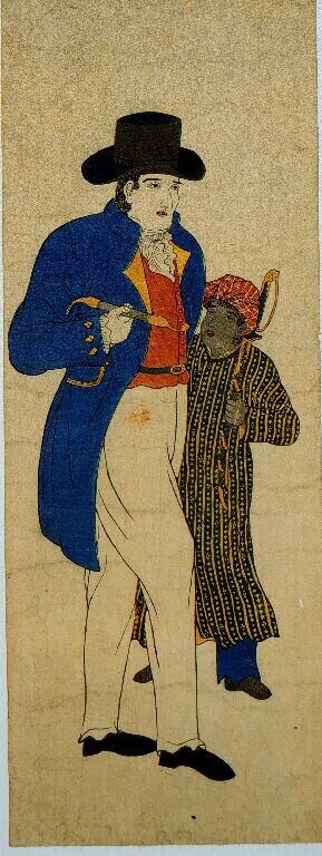Gekleurde houtsnle, voorstellende een Nederlander me...