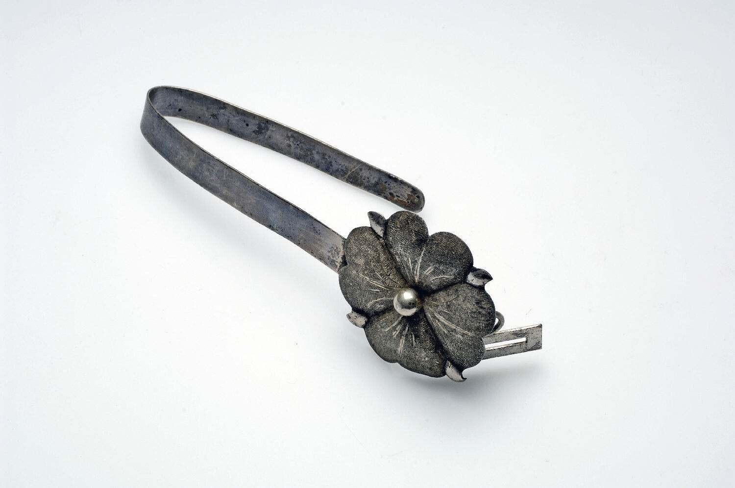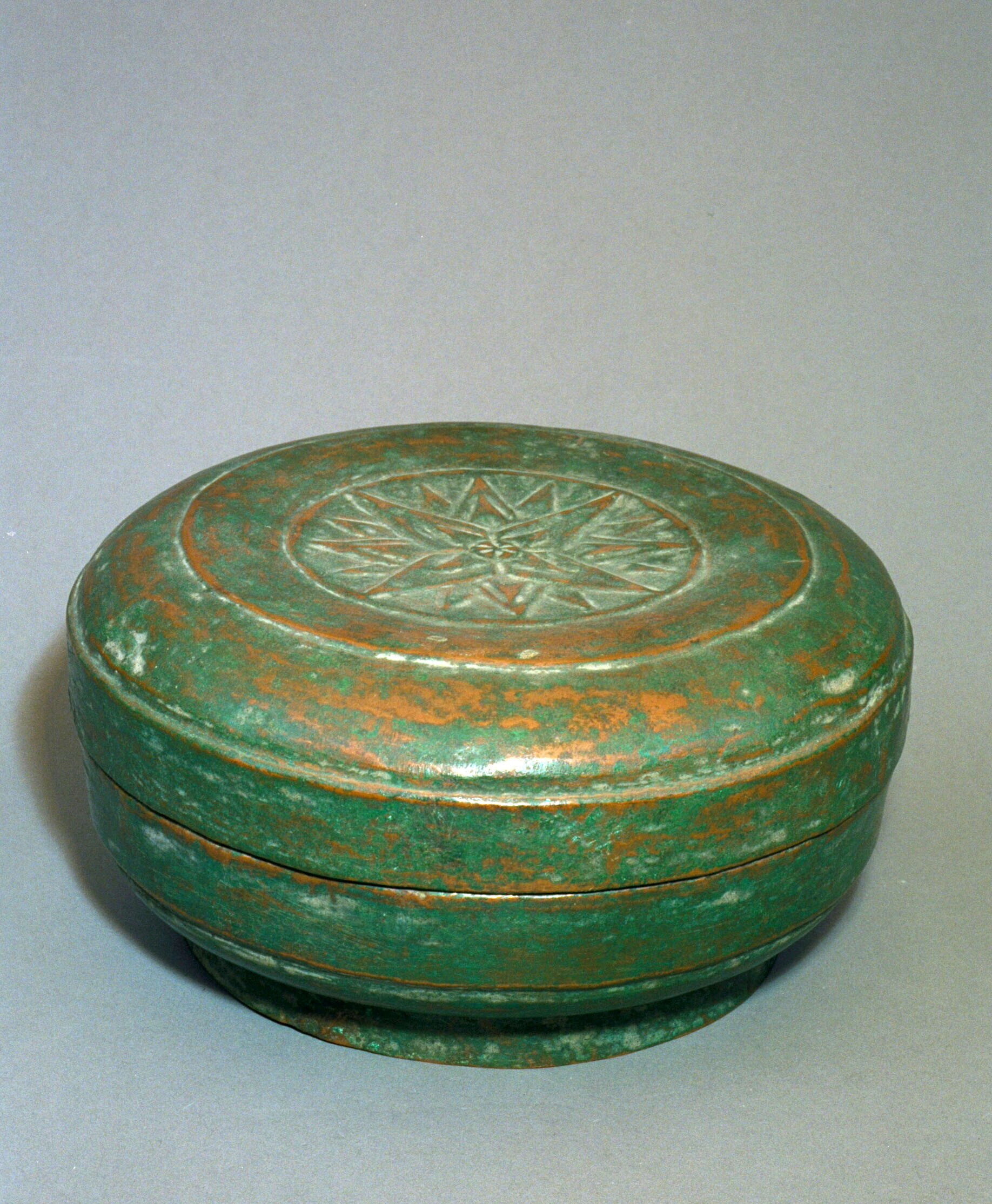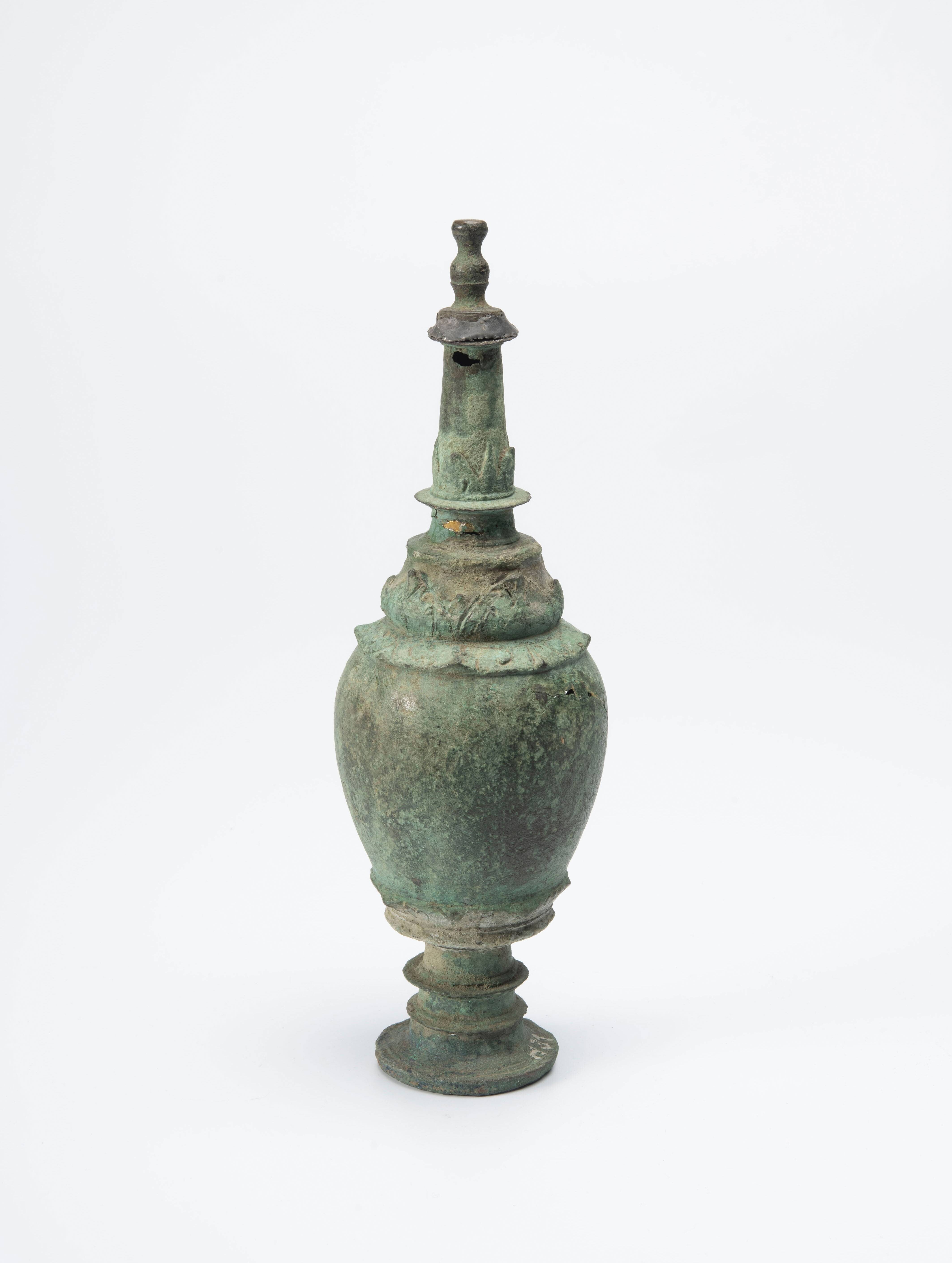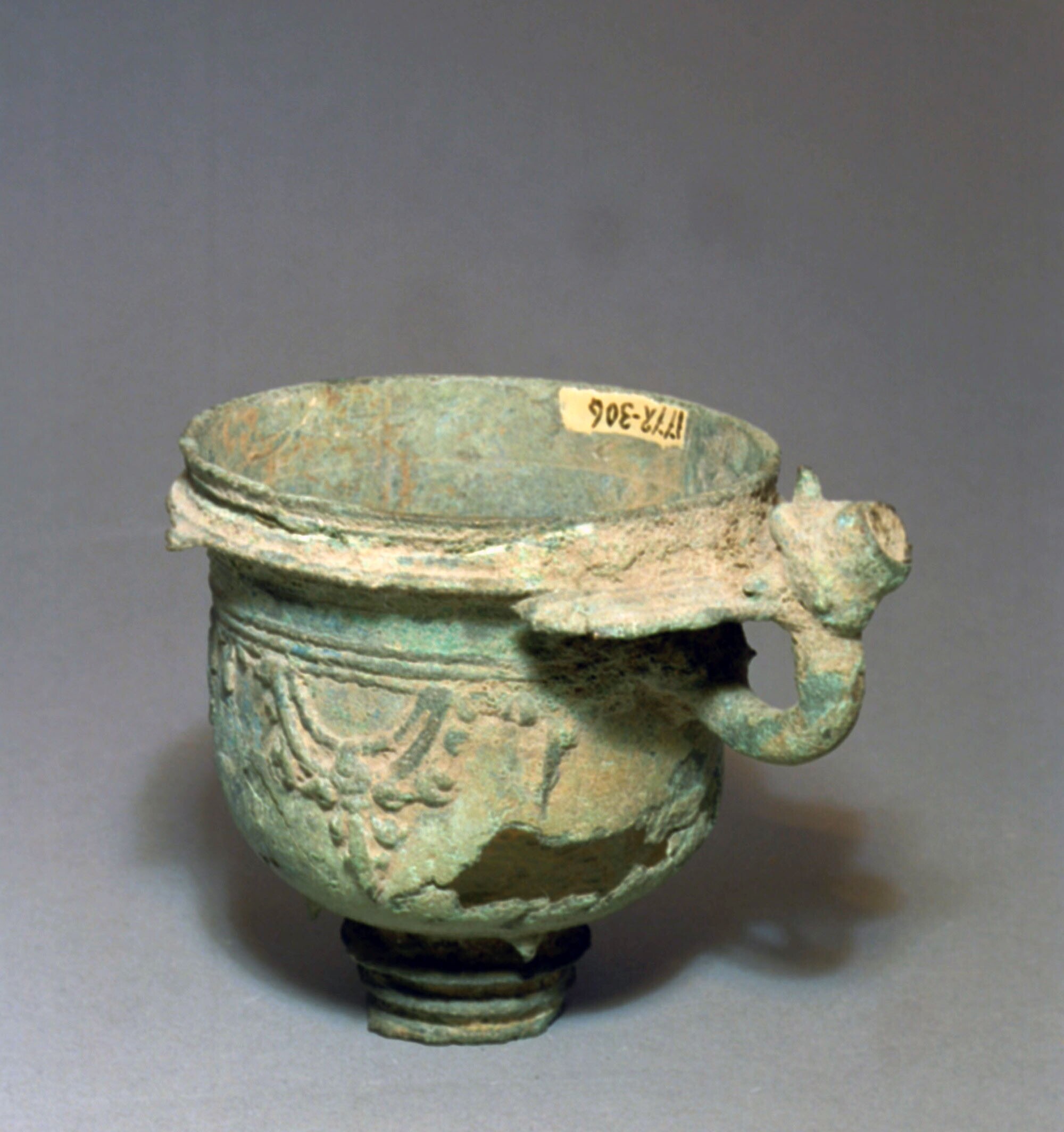 Opengewerkte metalen bak op voet, vermoedelijk wiero...