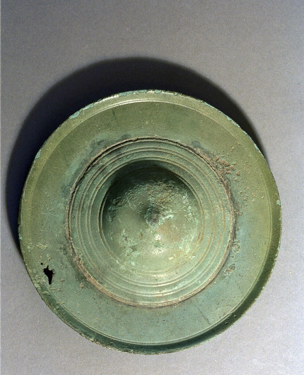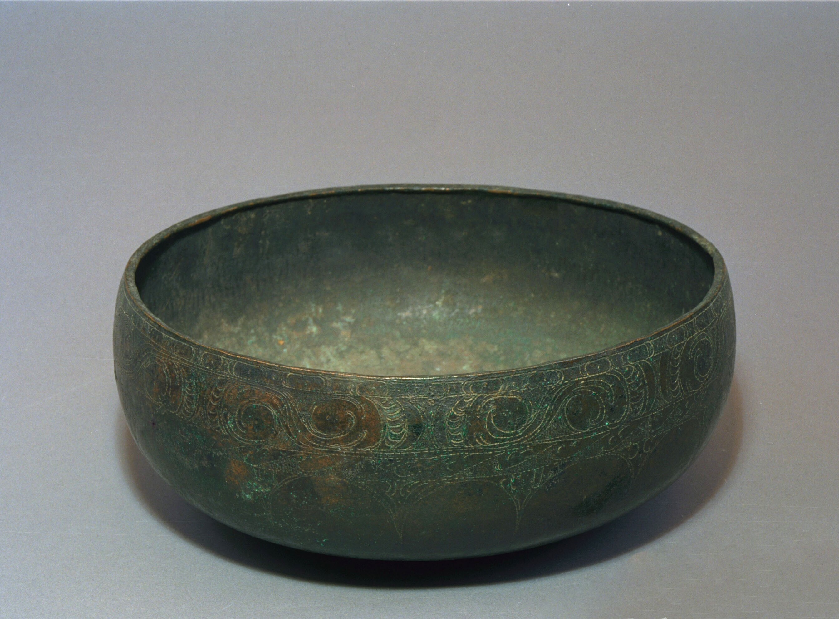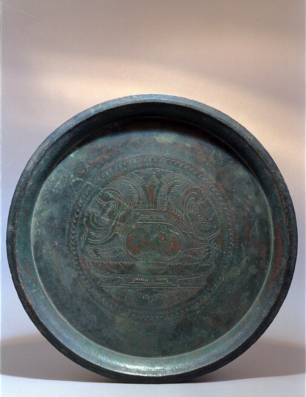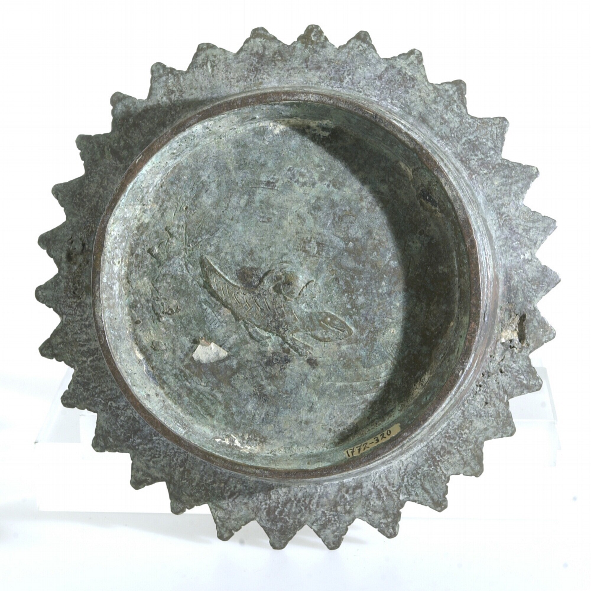 Bronzen schaal op voet voor het aanbieden van sirihp...