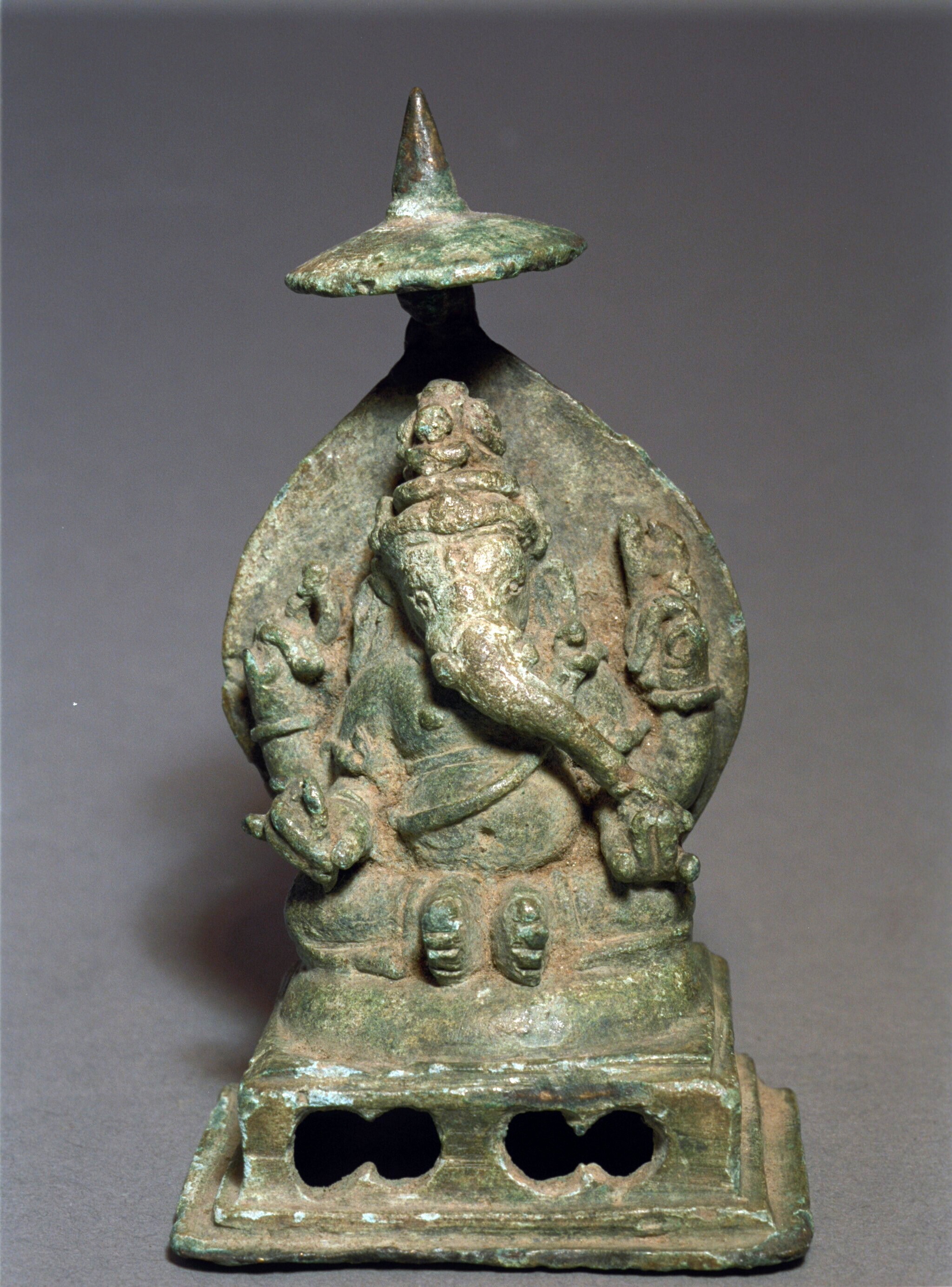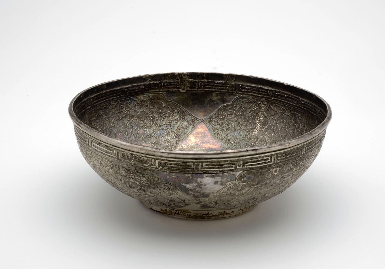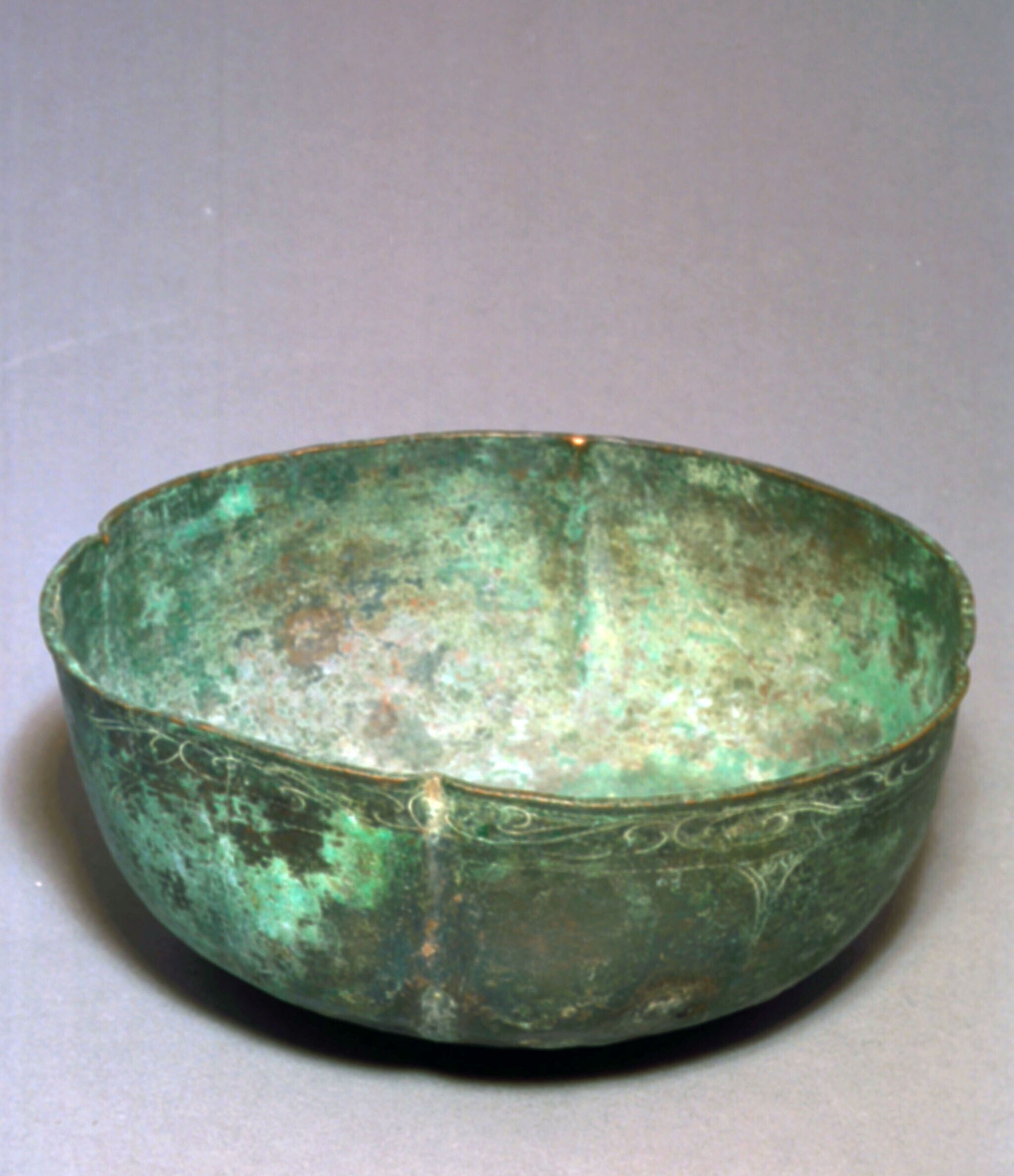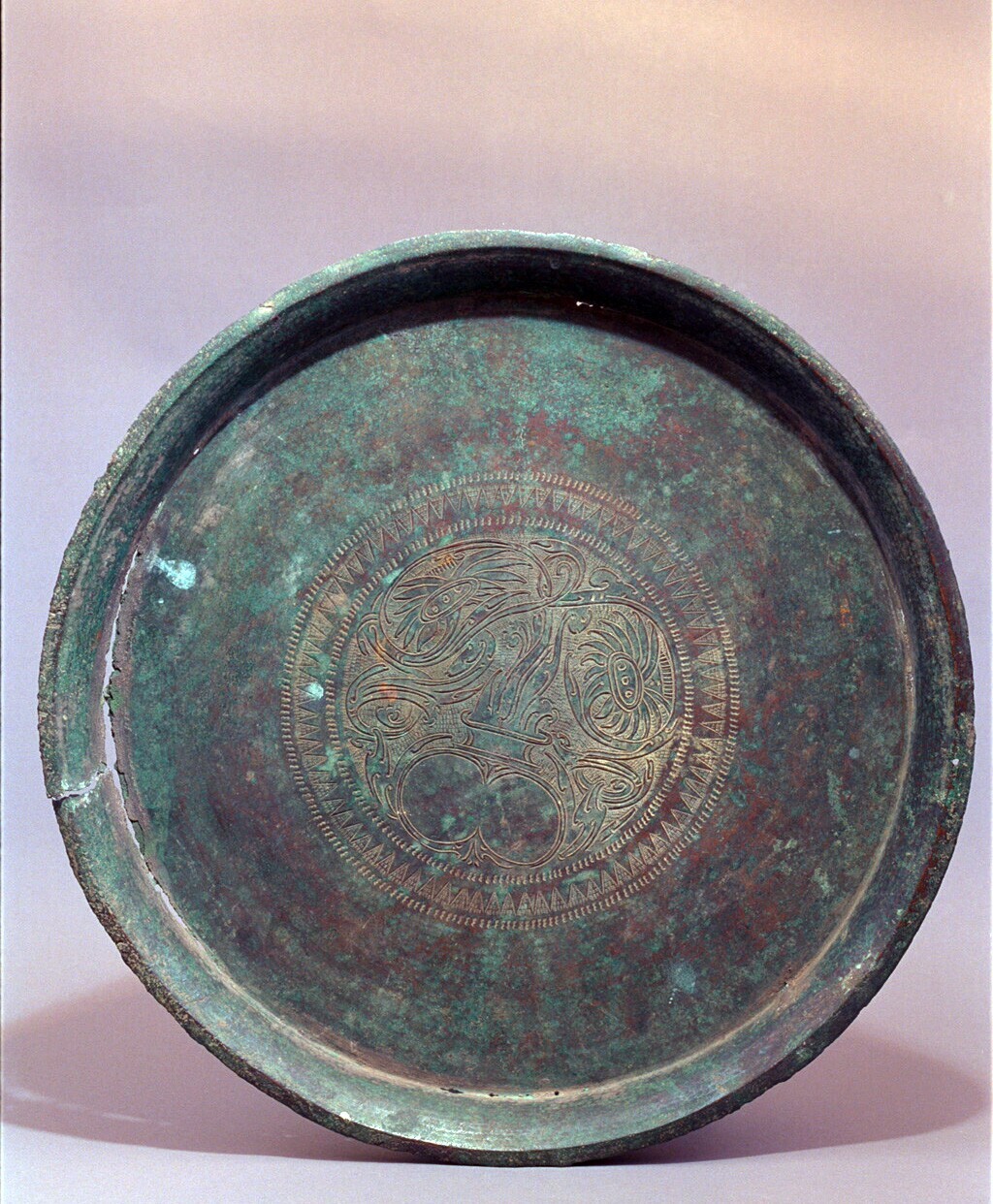 Bronzen schaal op voet voor het aanbieden van sirihp...