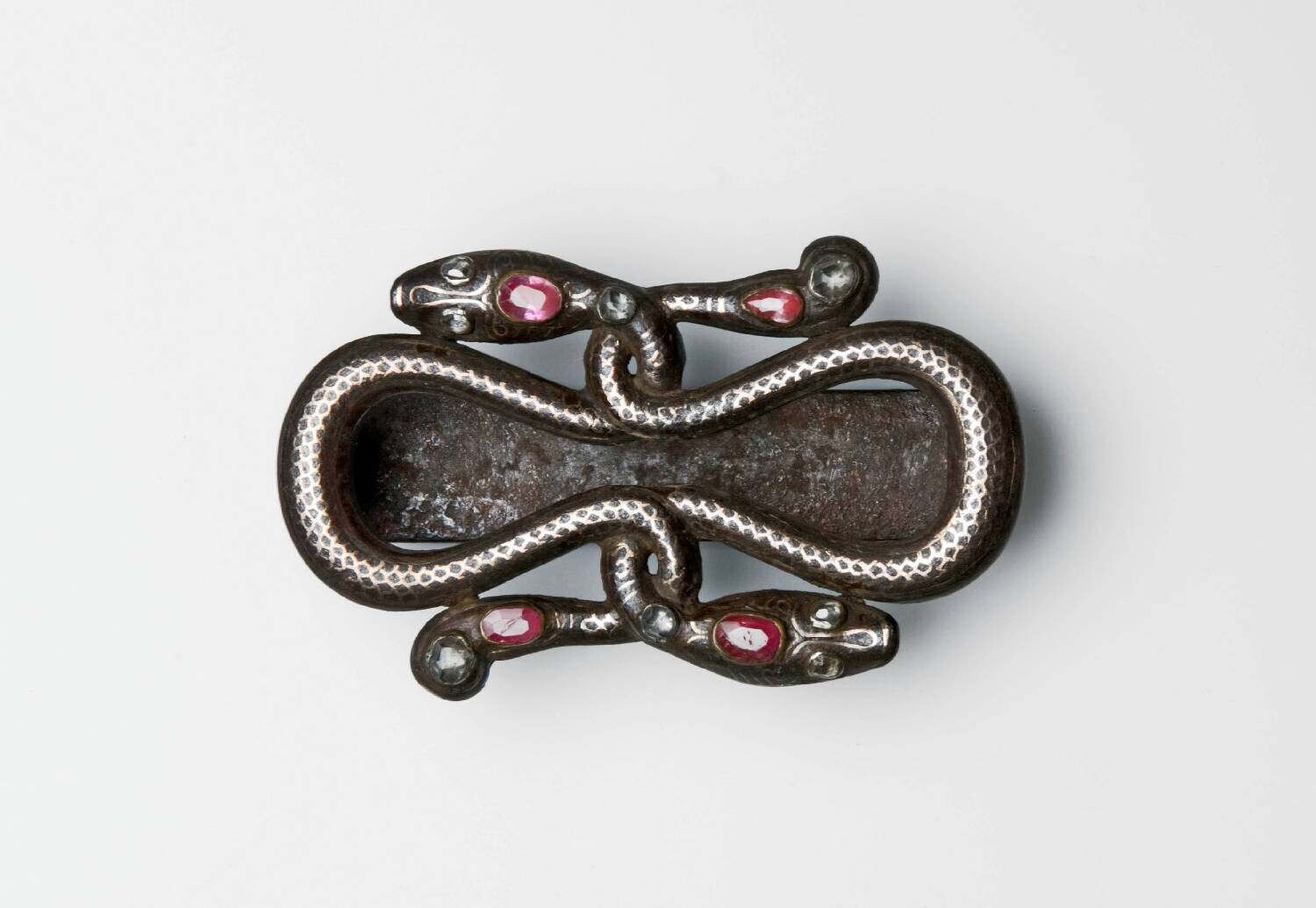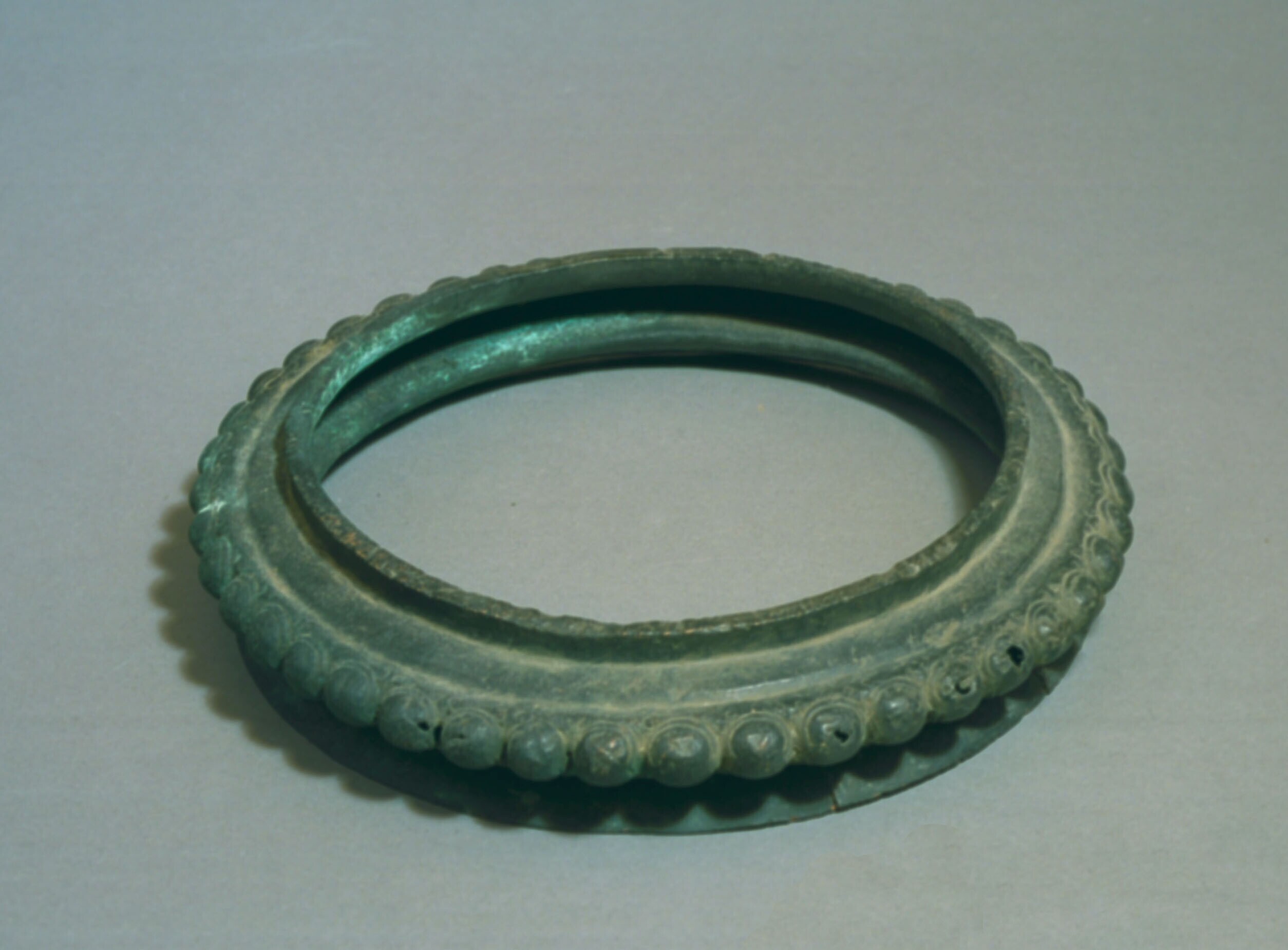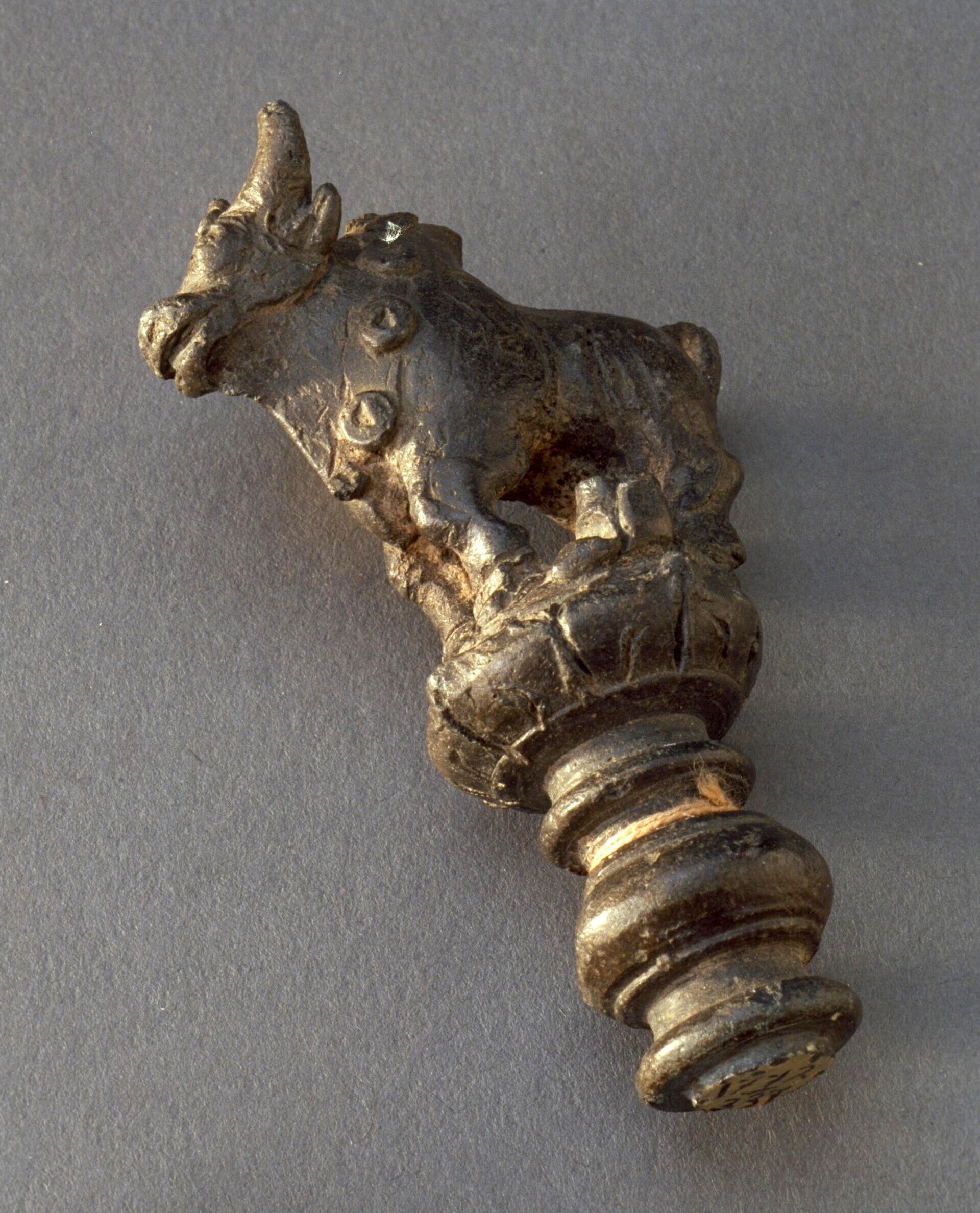 Zijstuk van een slaginstrument in de vorm van twee i...