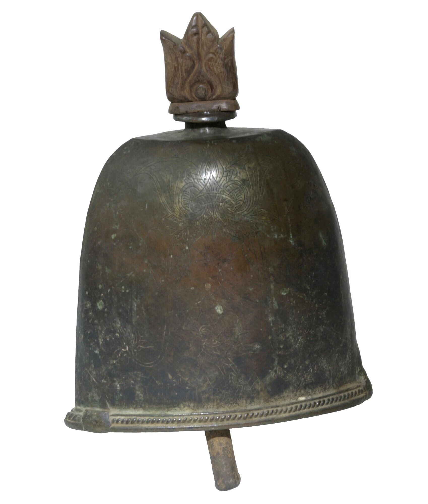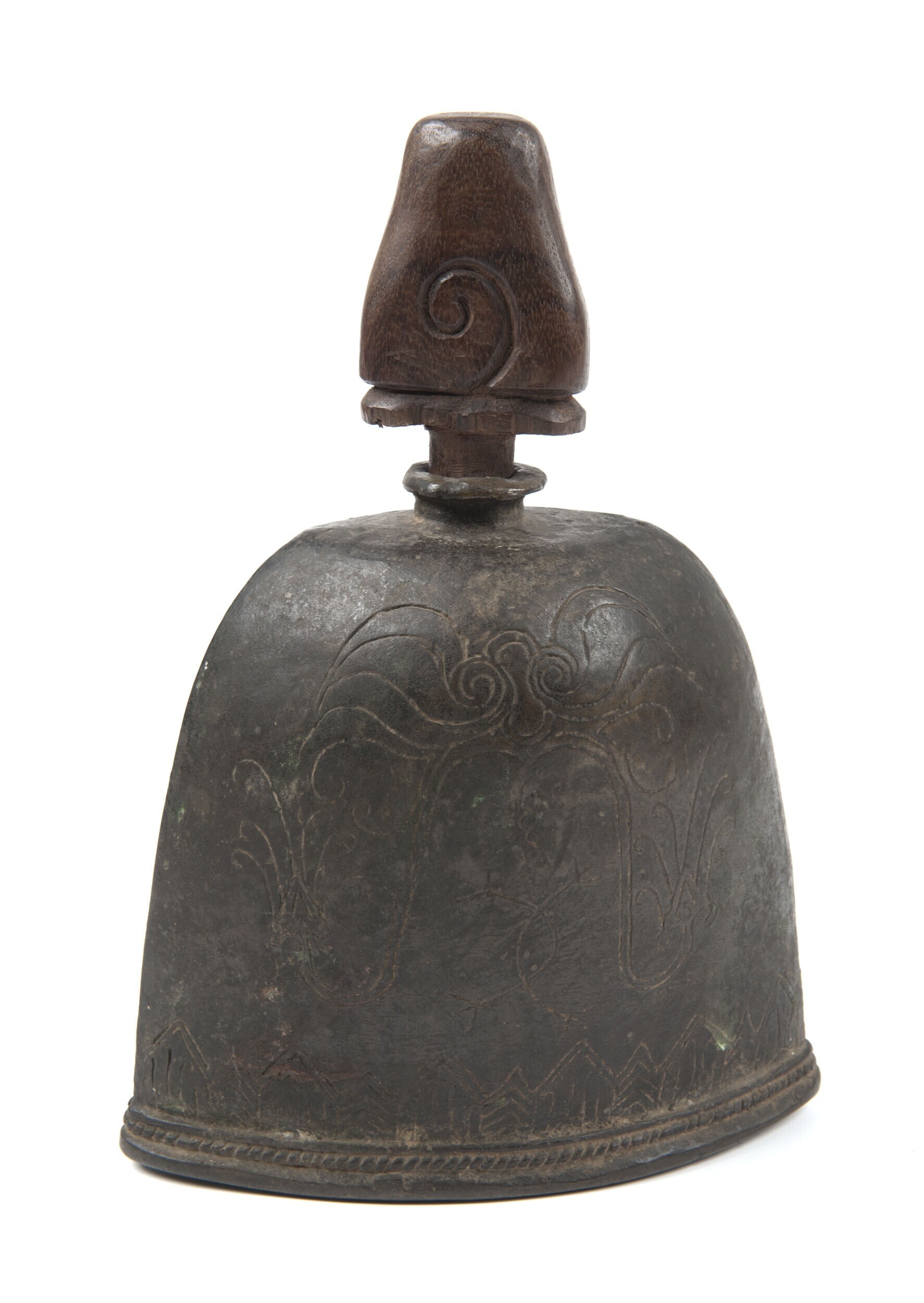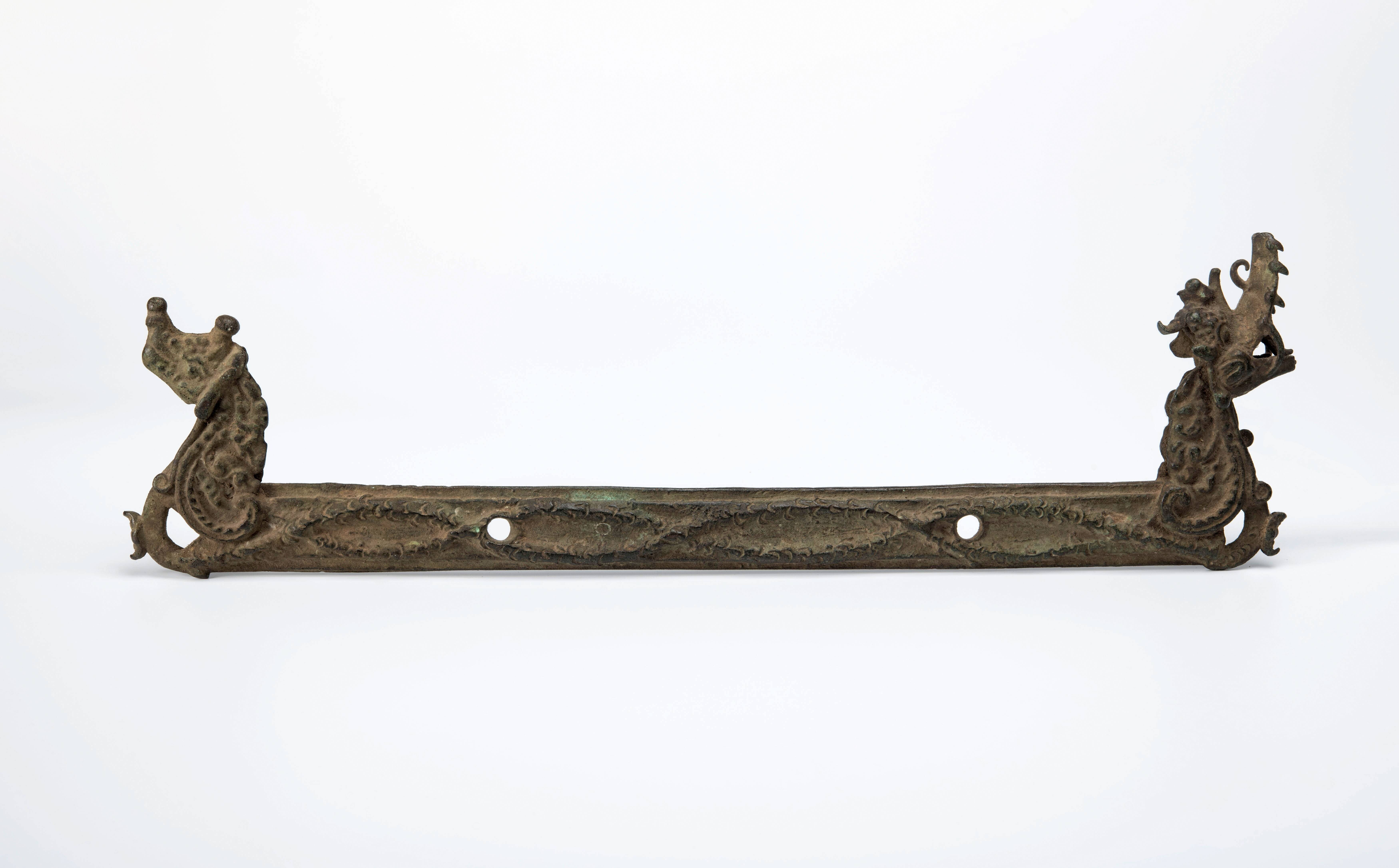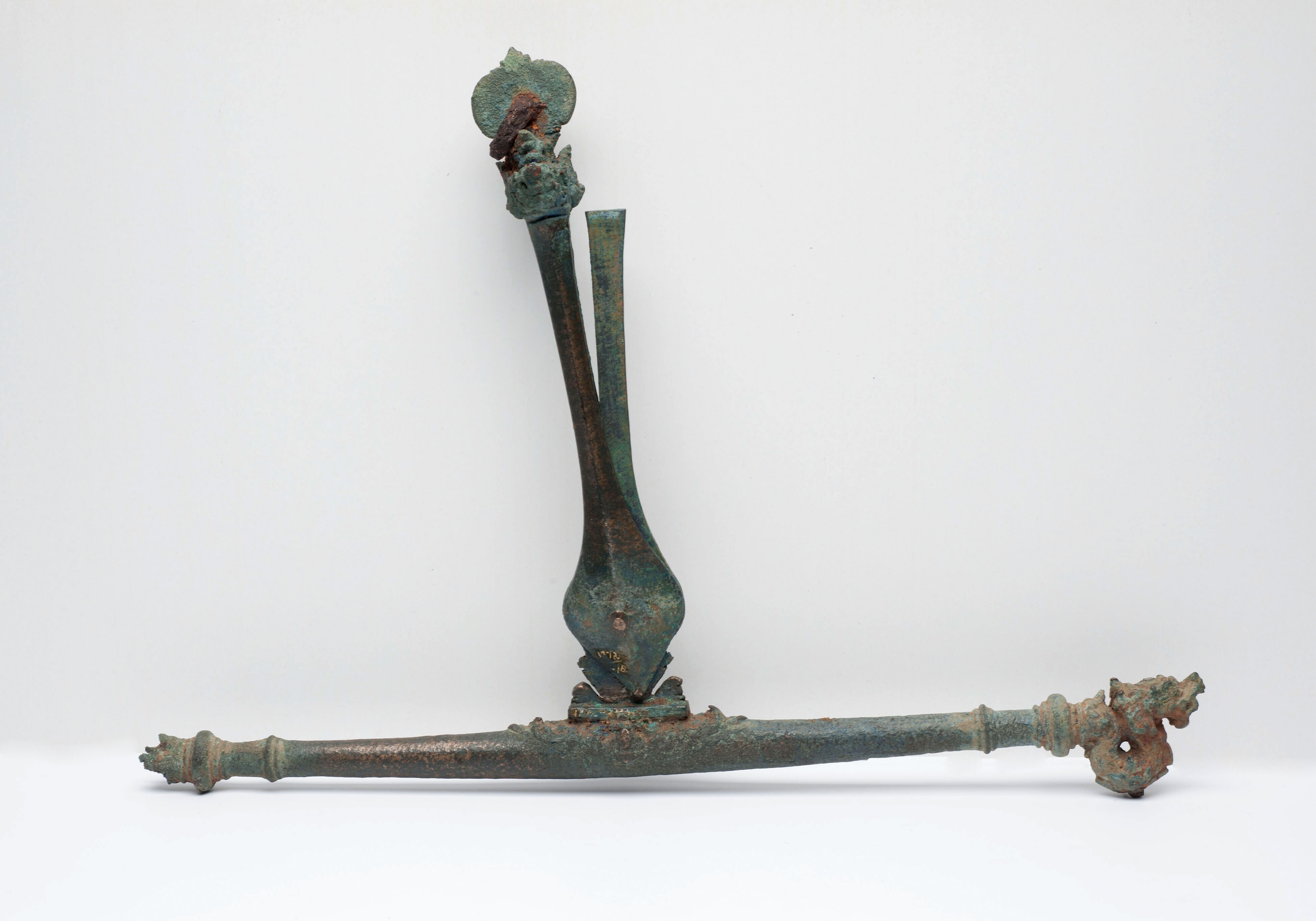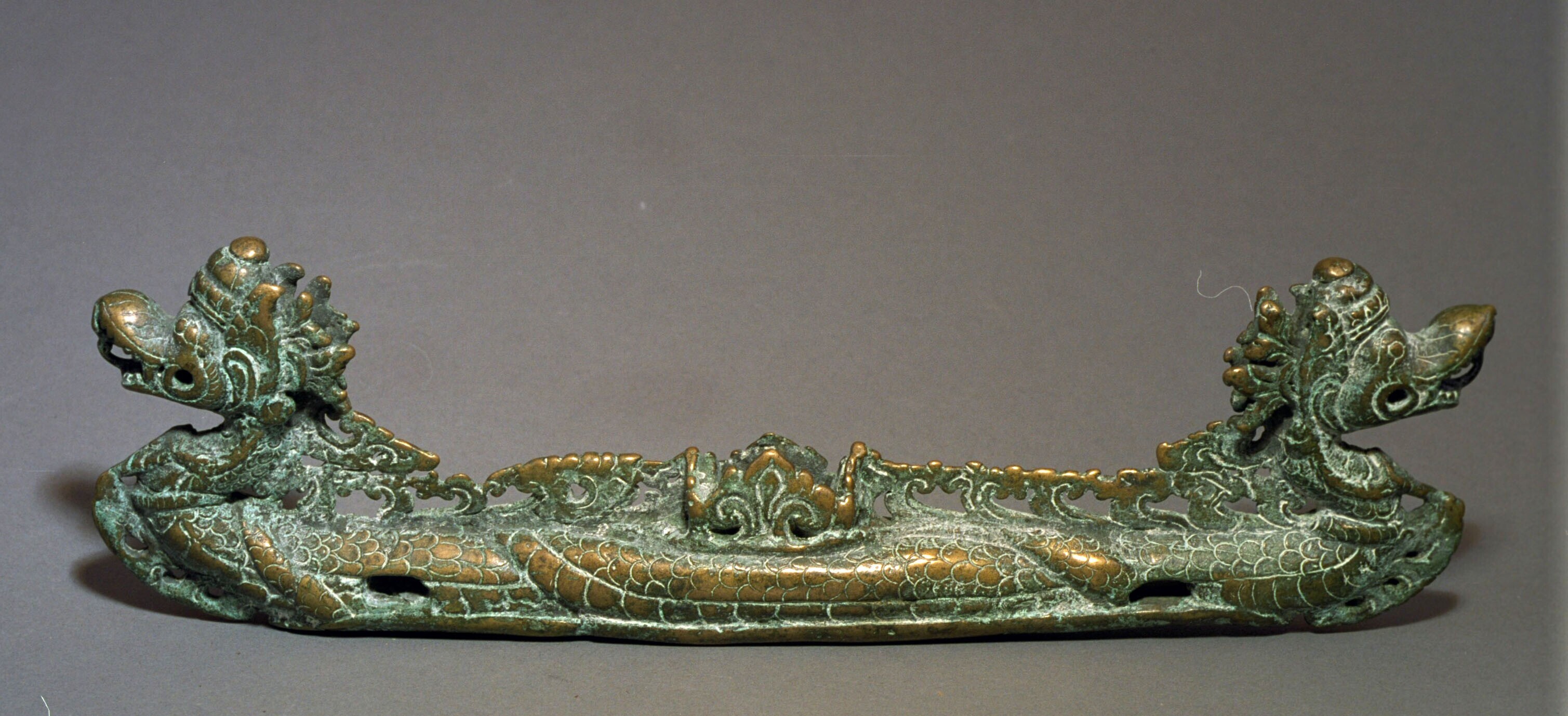 Bewerkt bronzen weegschaal, een nagakop aan het uite...