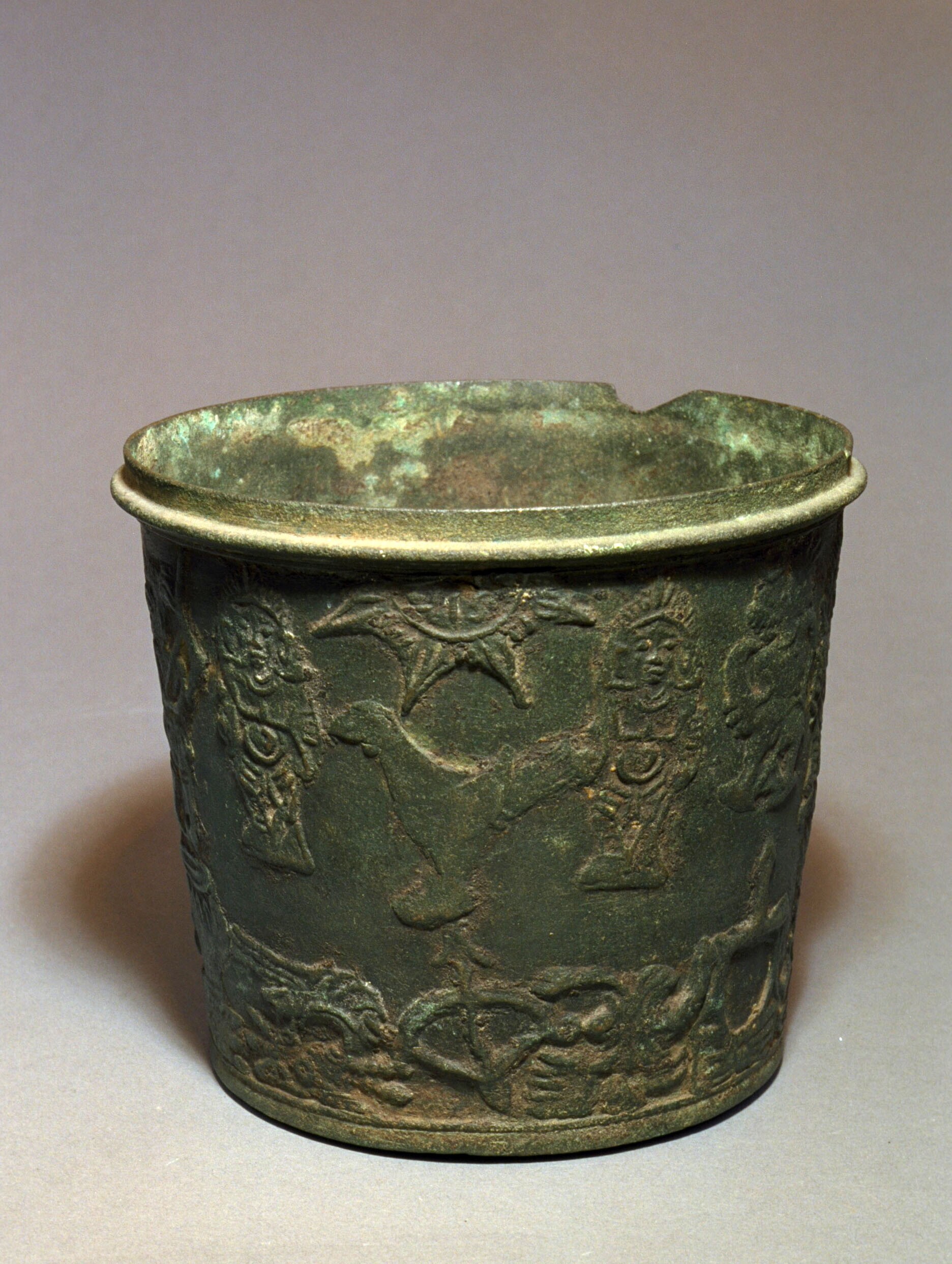 Bronzen wijwatervat met voorstelling van de dierenriem
