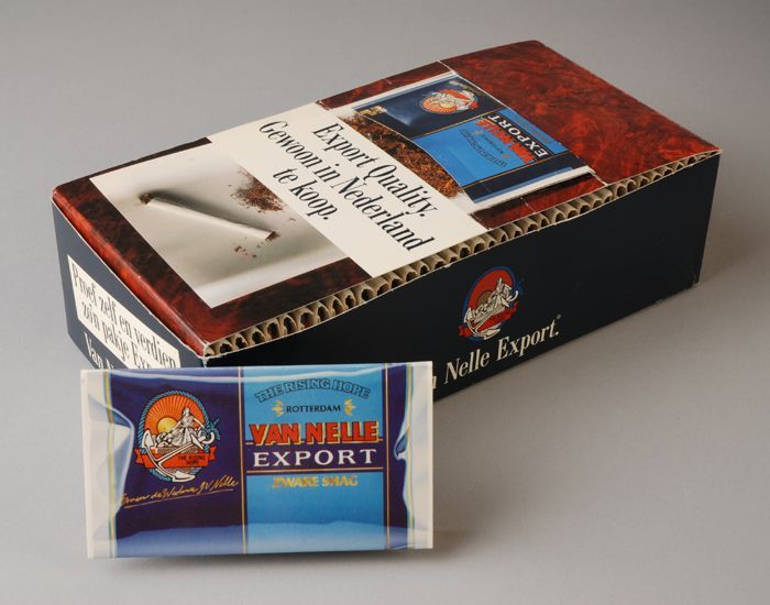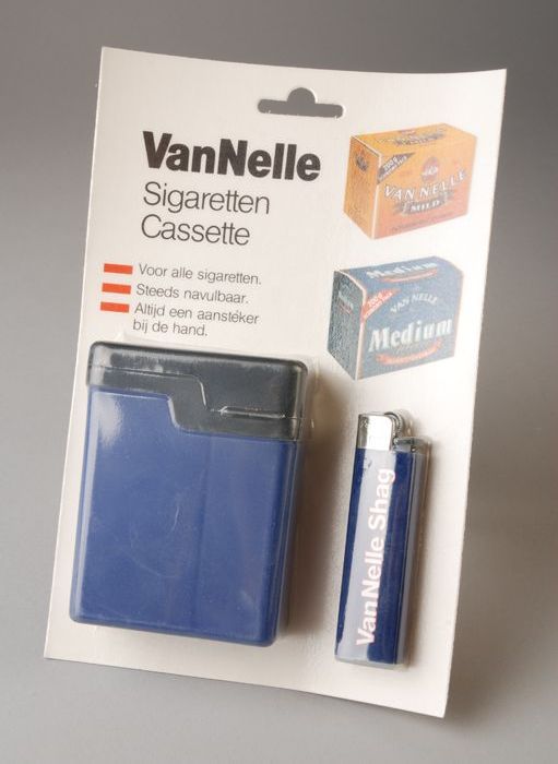 Karton met aansteker en sigarettendoos van "Van Nelle"