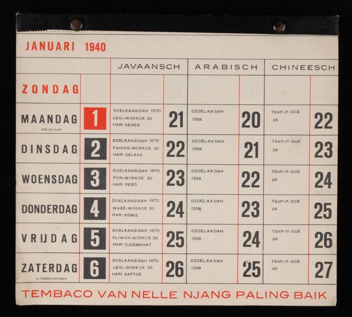 Scheurkalender voor het jaar 1940, bedoeld voor de N...
