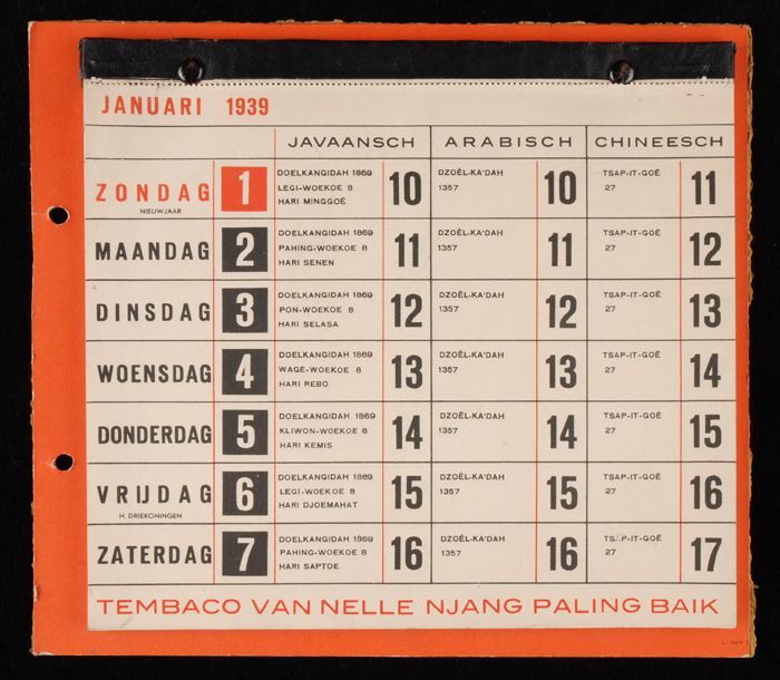 Scheurkalender voor het jaar 1939 bedoeld voor de Ne...