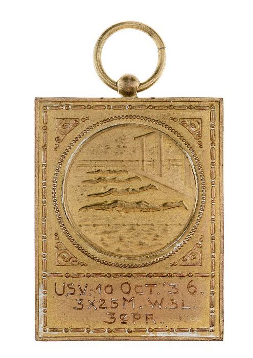 Medaille Van Nelle, zwemmen, met "U.S.V. 10 Oct.'36....