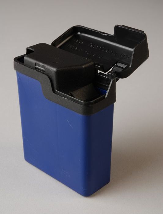 Blauwe plastic sigarettendoos met vak voor aansteker