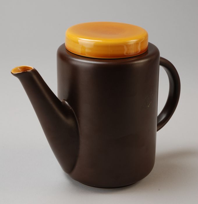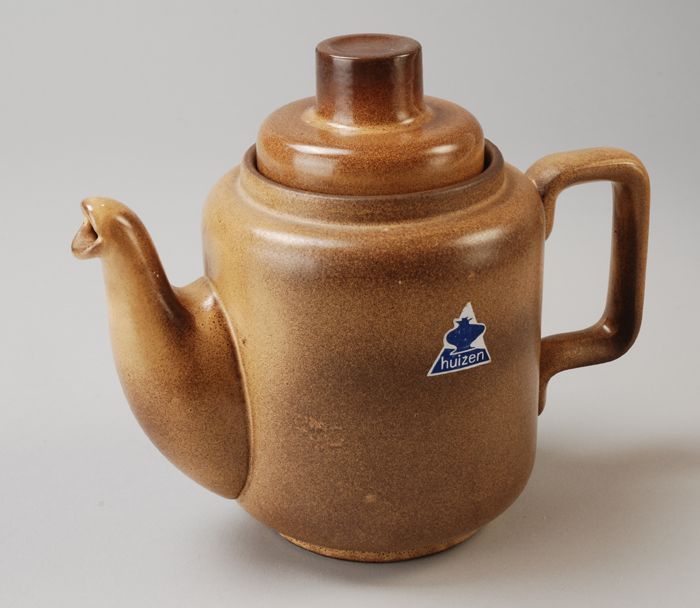 Donkerbruine theepot (A) met geelbruine binnenkant e...