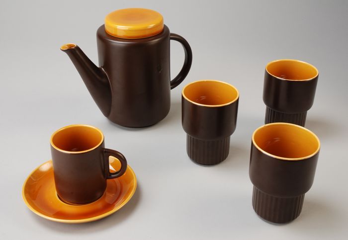 Felgele kop (A) met bruine schotel (B), model Laren