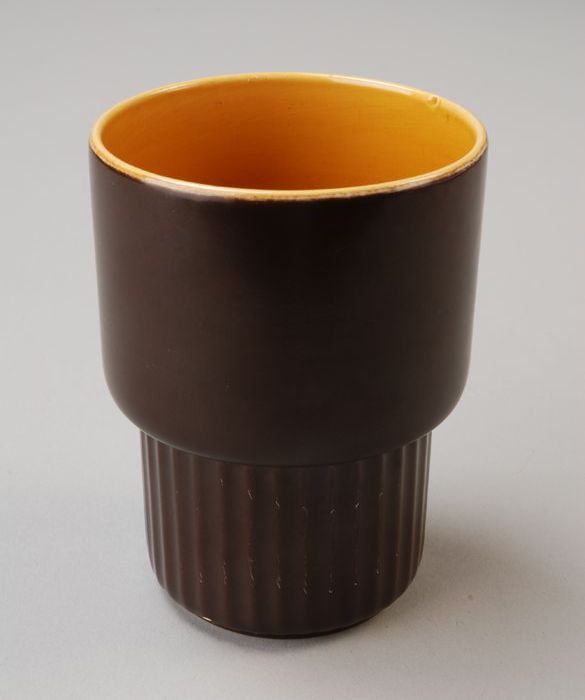 Donkerbruine drinkbeker met geribbeld onderstel en g...