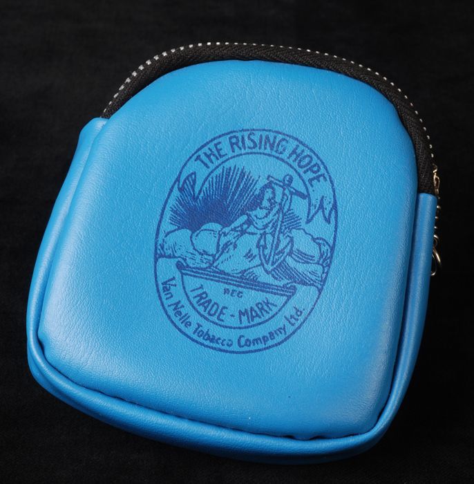 Blauwe portemonnee met opdruk "Shagtembakau Tjap War...
