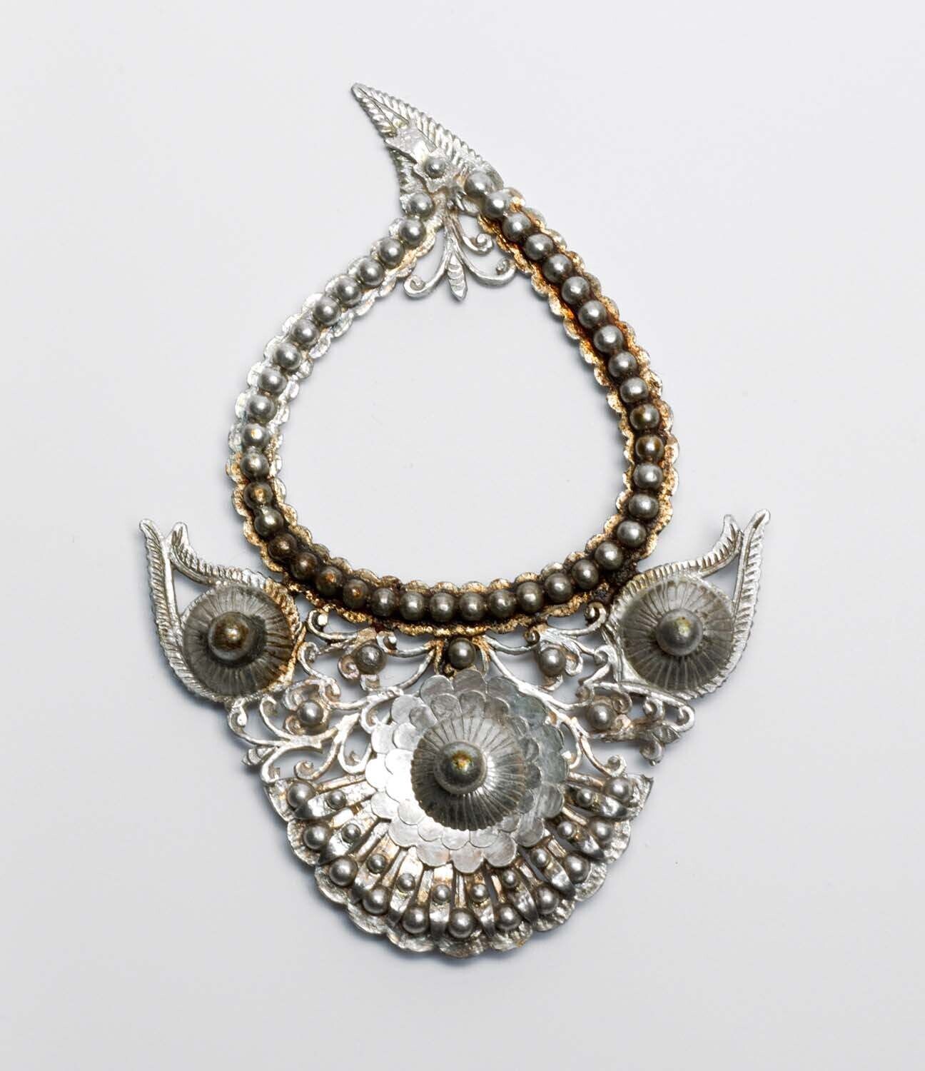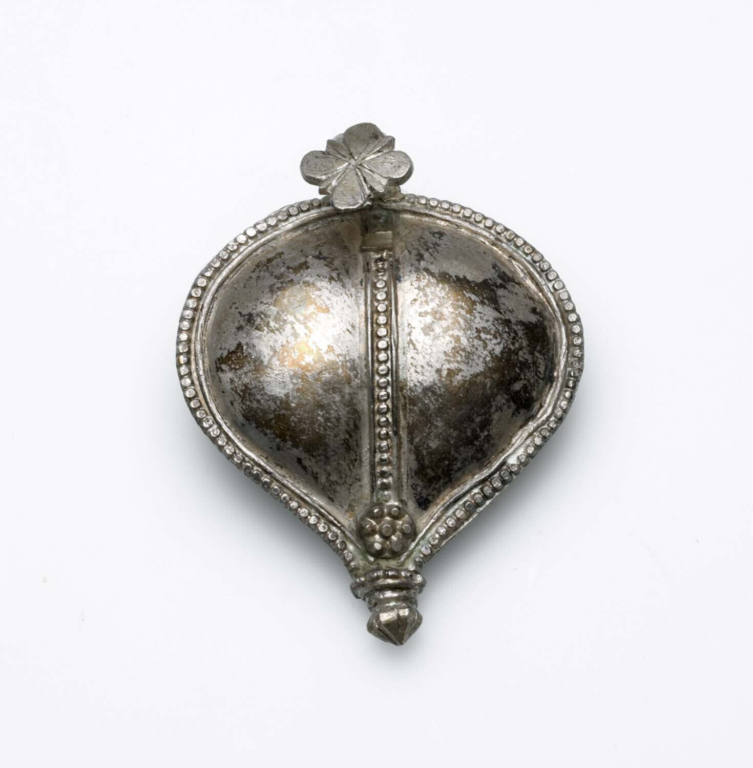 Hartvormig zilveren sieraad, vermoedelijk schaamplaa...