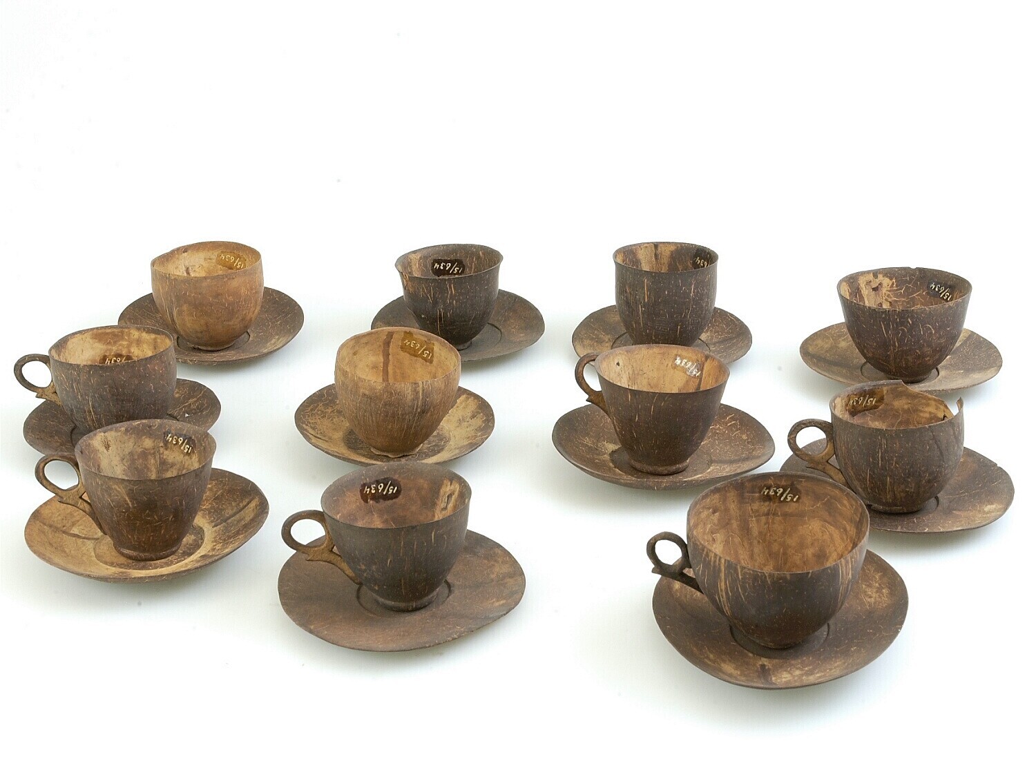 Elf koppen en schotels van kokosnoot